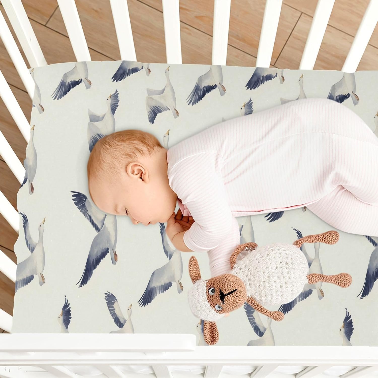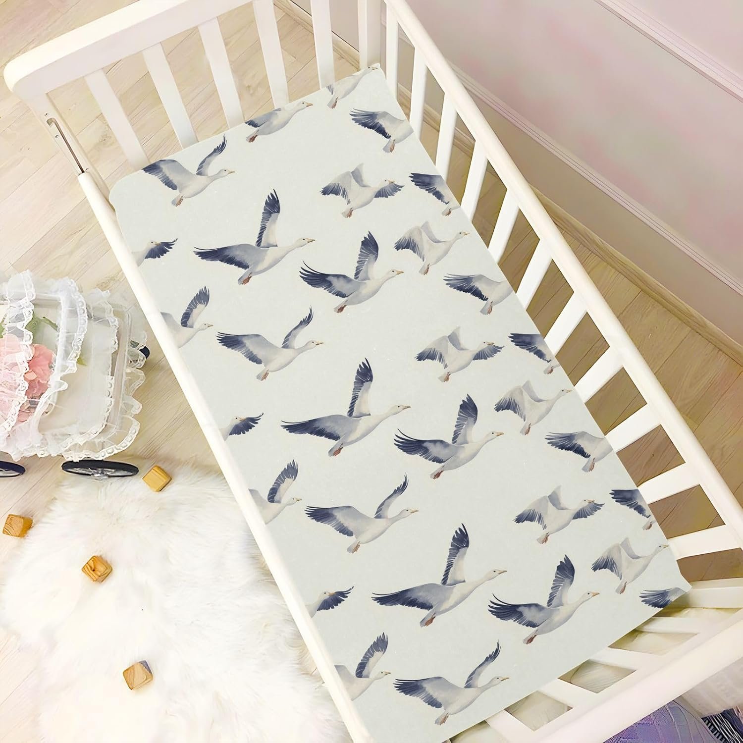 Crib Sheets for Boys Girl Wild Geese Flying Breathable Mini Crib Mattress Sheets Fitted,Toddler Baby Sheet for Cot Mattress 39 * 27 * 5In