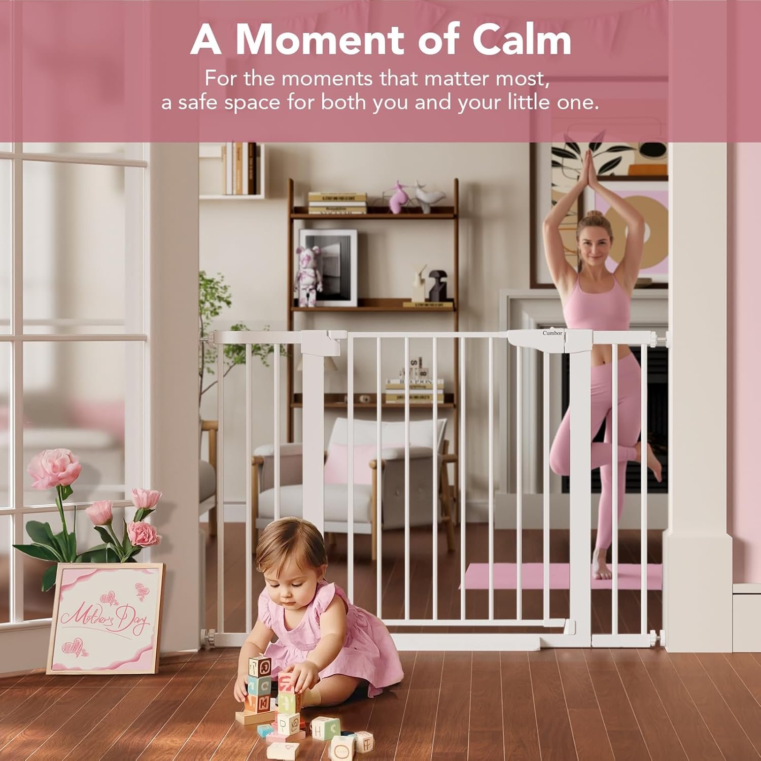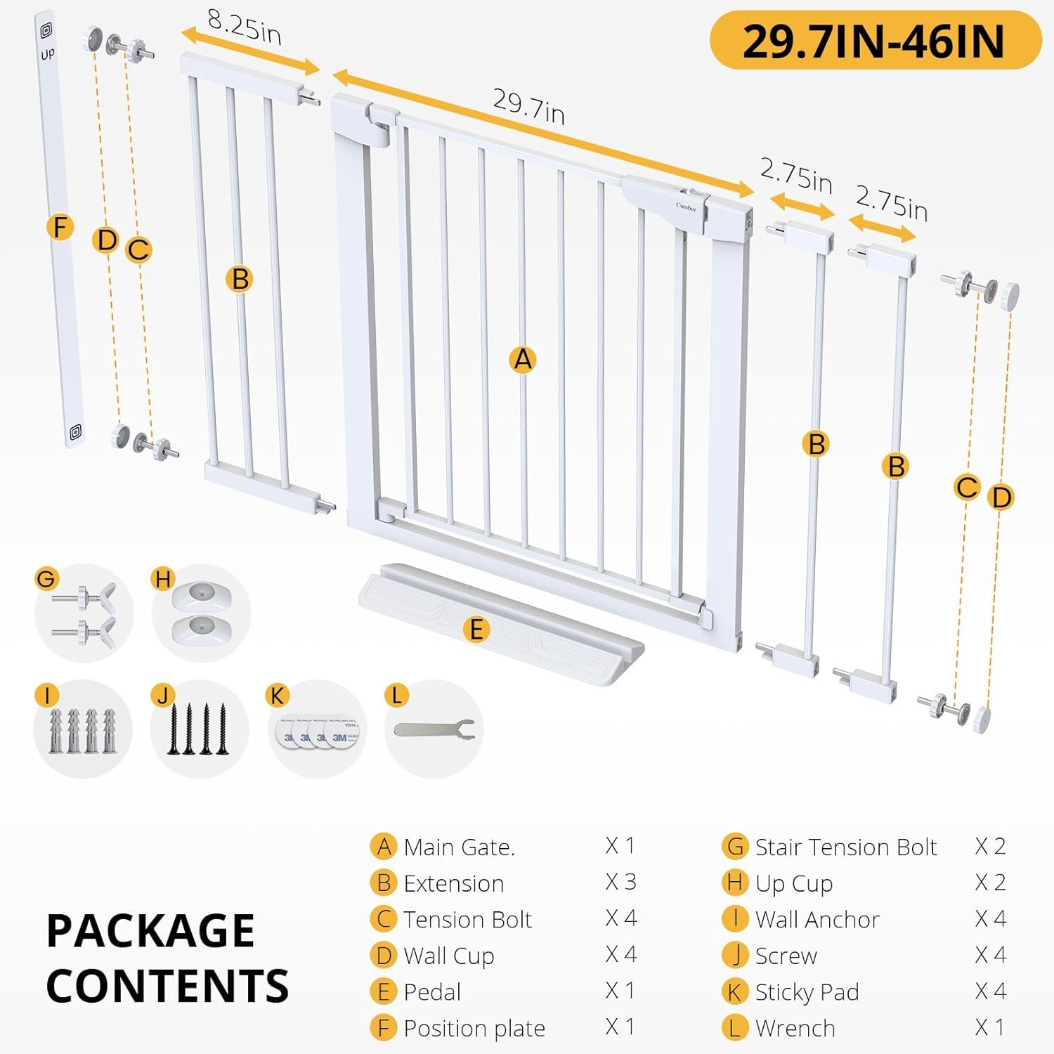Cumbor 29.7-46″ Baby Gate for Stairs, Toddler Safety Essentials for The House, Auto Close Dog Gate for Doorways, Mom’s Choice Awards Winner-Easy Install Pressure Mounted Pet Gates for Dogs, White