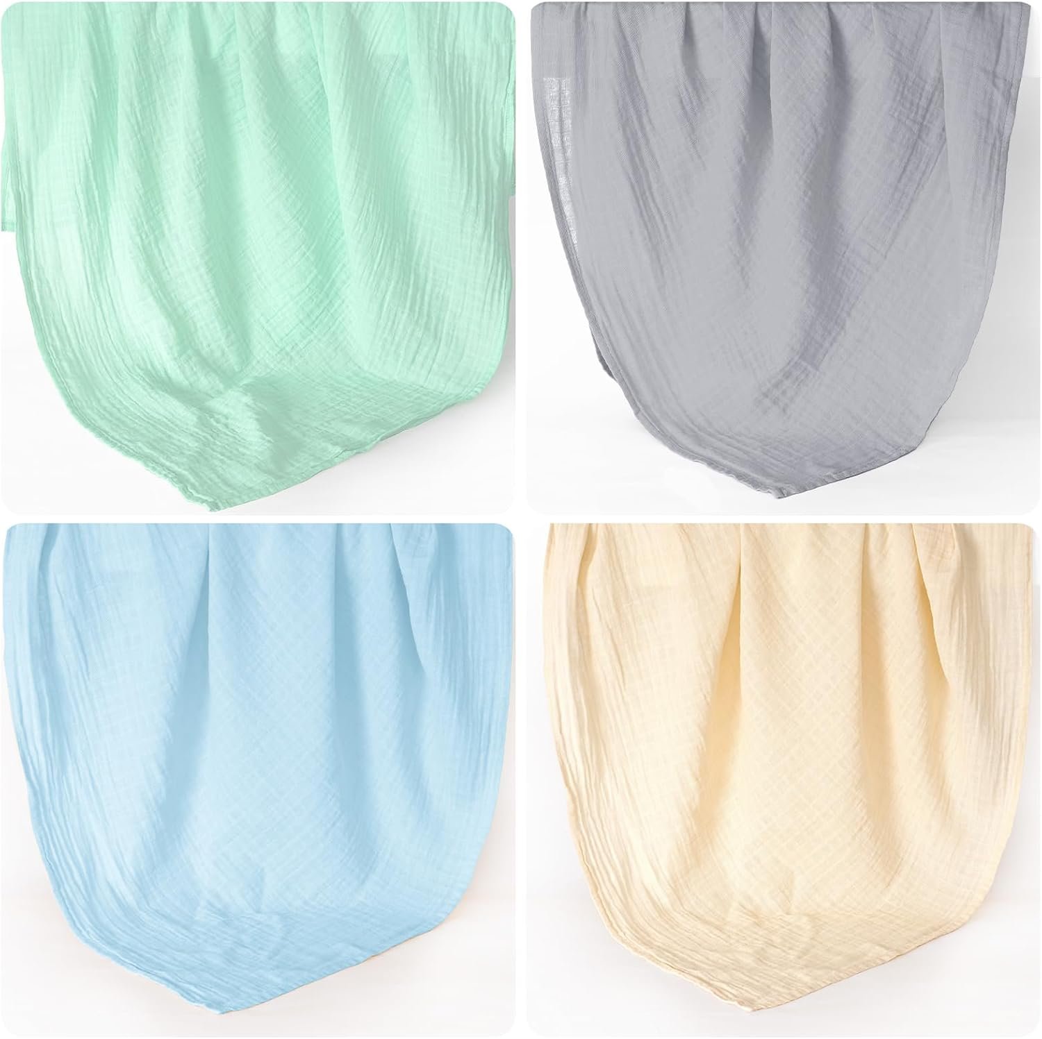 david’s kids 4 Pack Baby Muslin Swaddle Blankets 47″ x 47″, 100% Cotton Swaddling Blankets Wrap for Boys Girls, Ultra Soft Breathable Receiving Blanket, New Born Essentials, Green&Grey&Blue&Beige