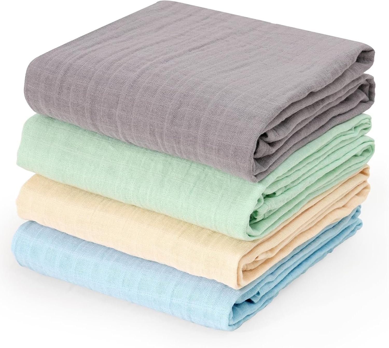 Most Useful Baby Product: Our 4-packed muslin swaddle blankets, perfect for easy changing and washing, feature a large size of 47×47 inches. Larger size design removes parents’ worry of babies outgrowing the blankets soon as they transition into their toddler years. Our muslin blankets are multifunctional for year-round use. Their usage varies from swaddling blankets to nursing covers, burp cloth, pram covers, bath towels, baby stroller, picnic or tummy time blanket, diaper changing mat and play mats.
