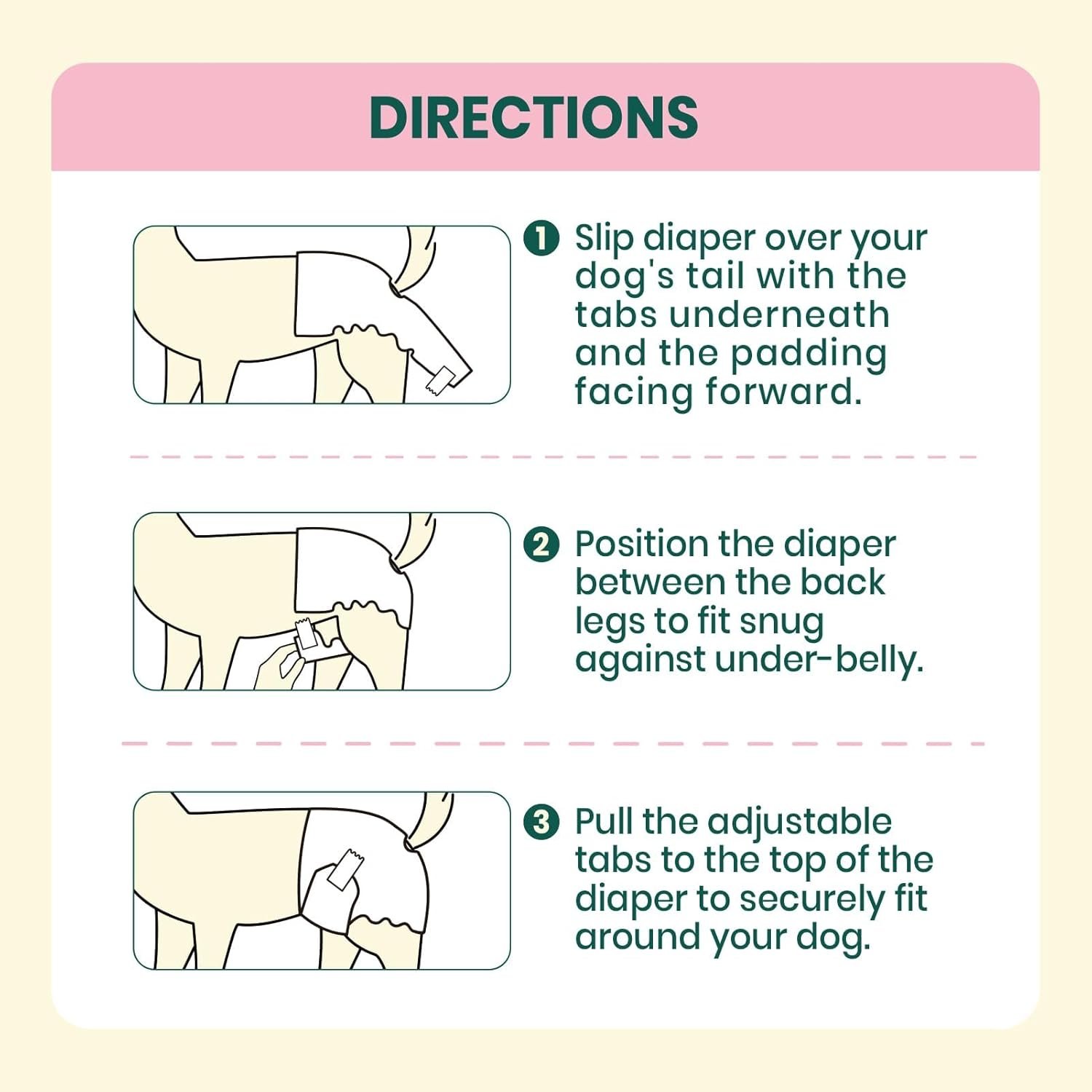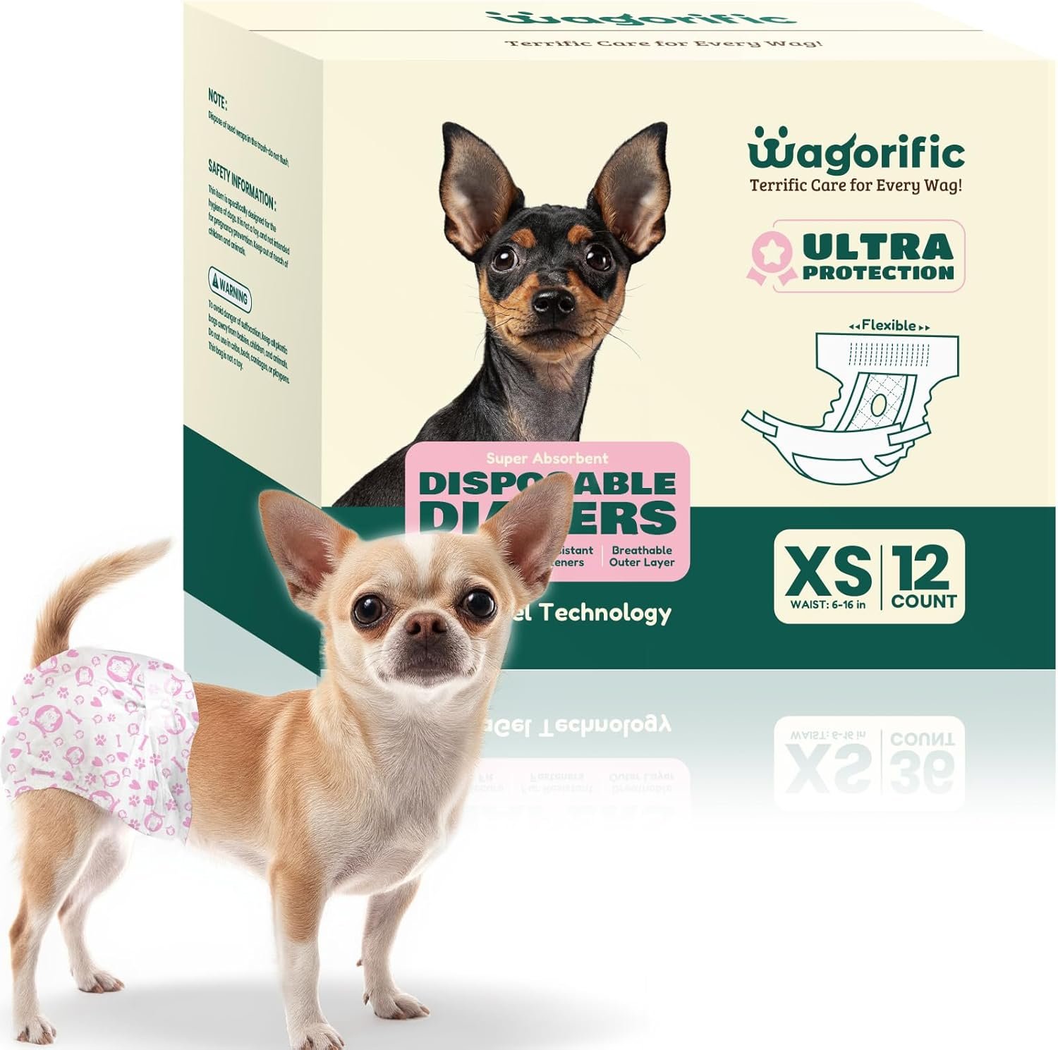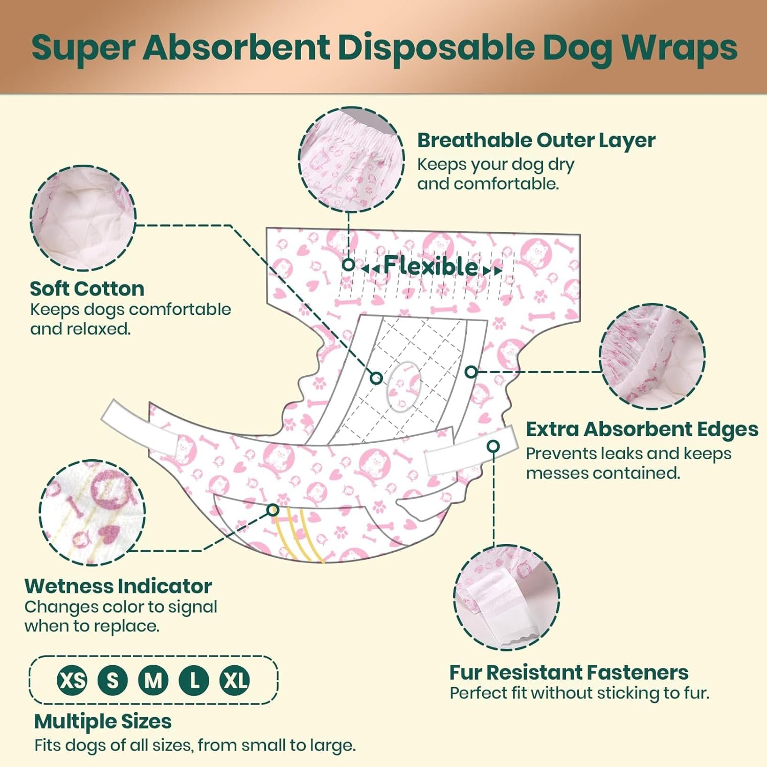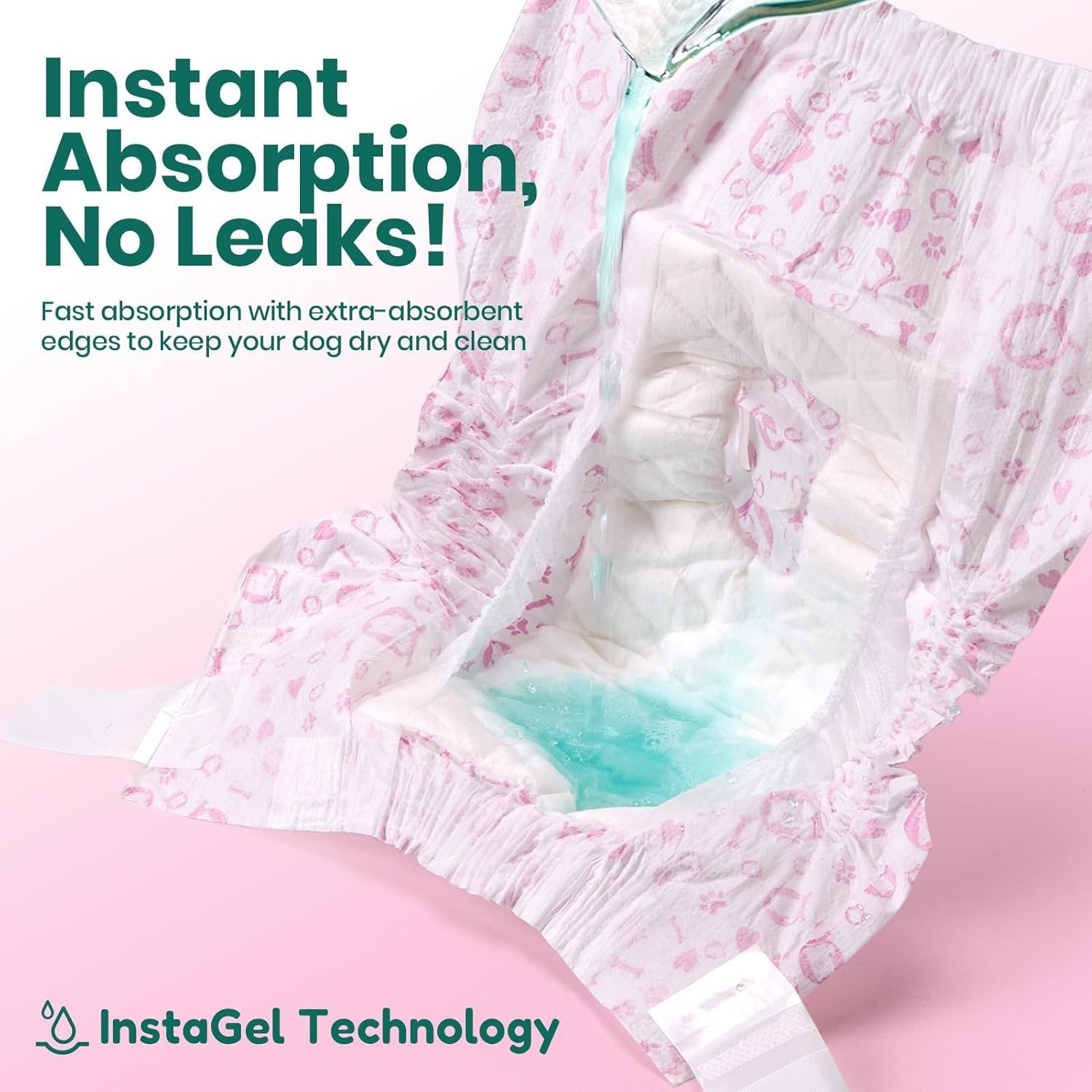 Long-Lasting Comfort and Leak Protection: Features a highly absorbent core that locks in moisture quickly, keeping your dog dry and comfortable whether at home, outdoors, or overnight. Perfect for senior dogs, dogs with incontinence, or those in training