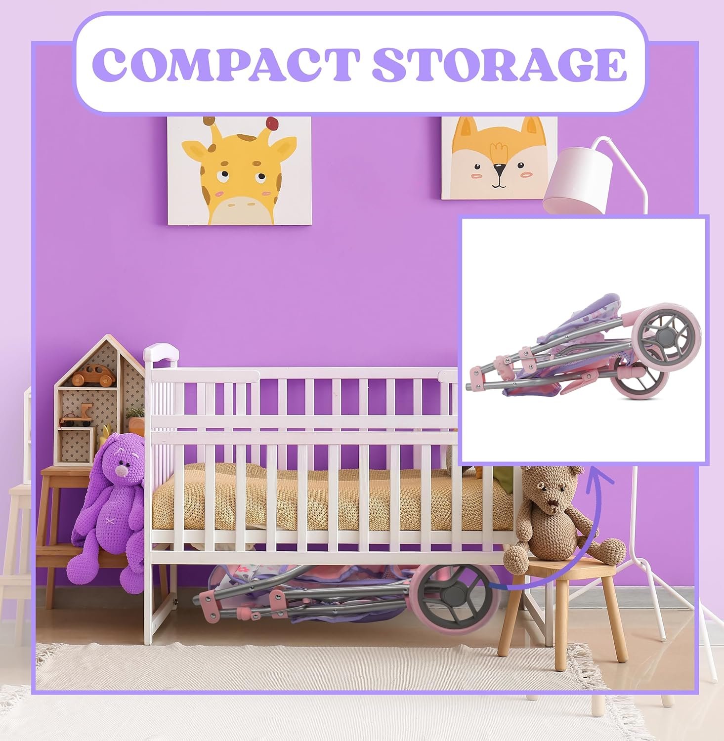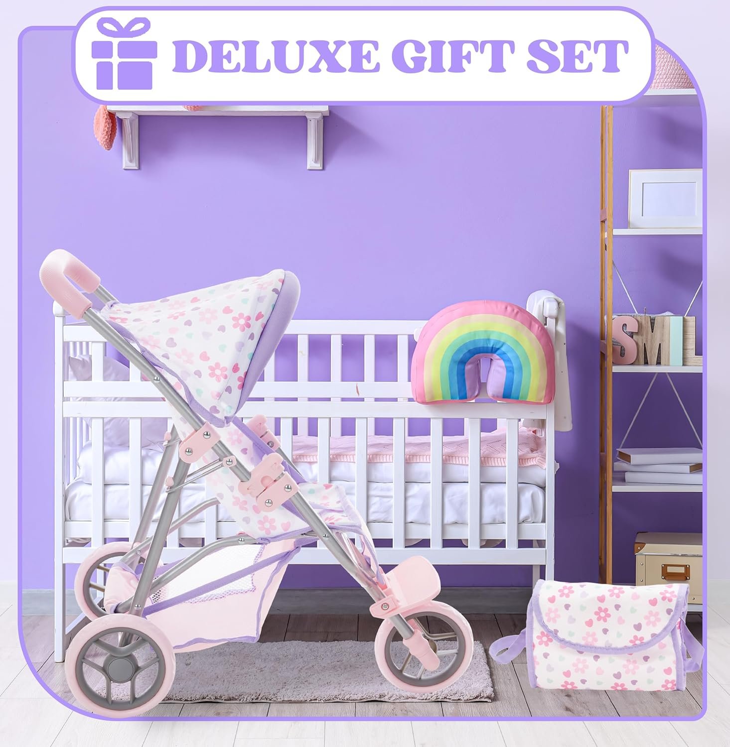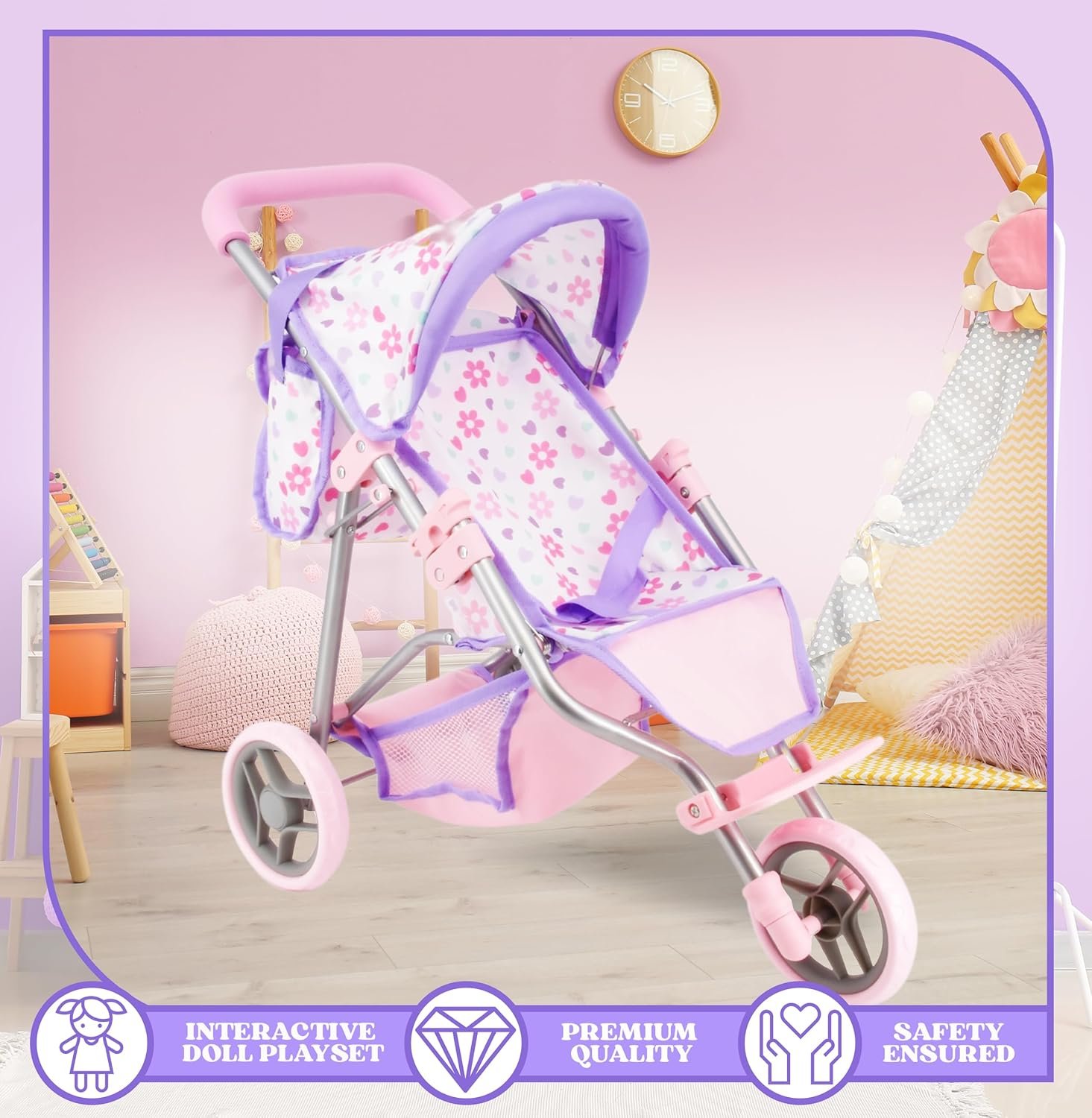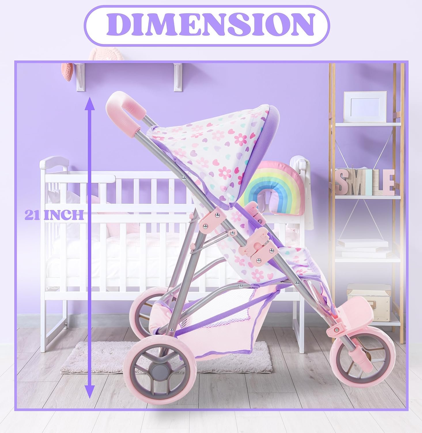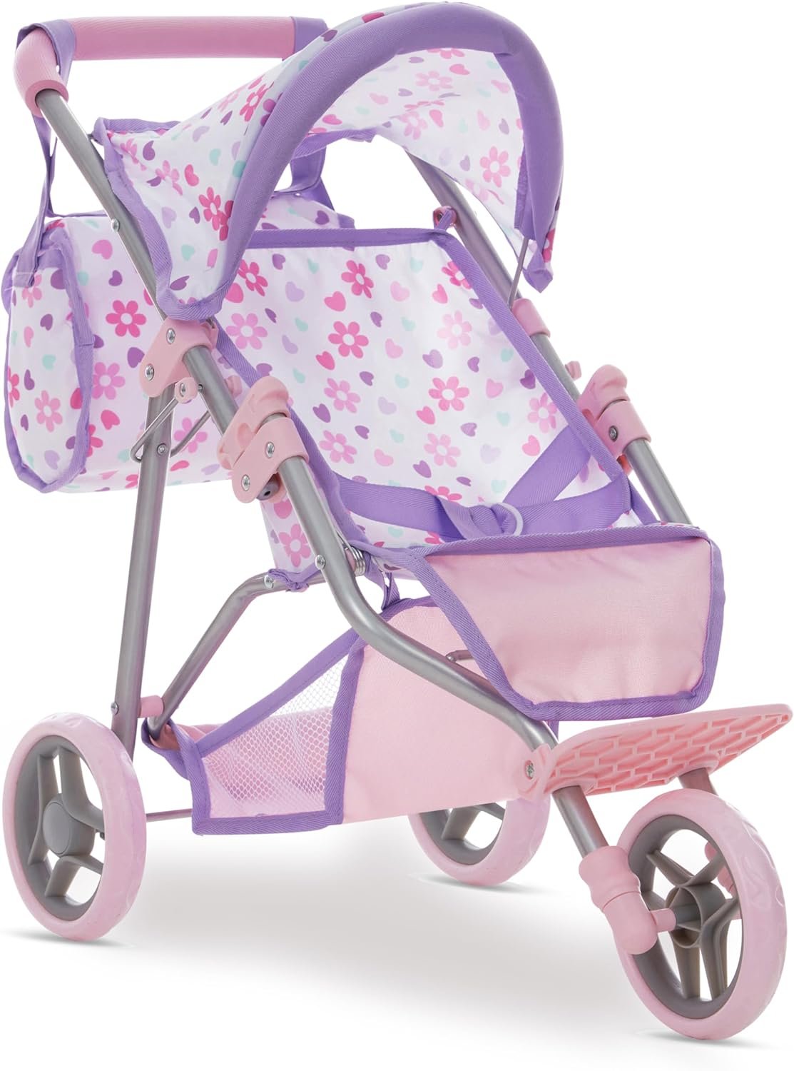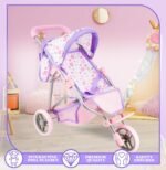 Matching Purple Bag & Storage Basket: Our jogging stroller comes with convenient storage basket and matching vibrant colorful diaper bag to keep doll accessories organized and accessible; adds a more fun realistic touch to this adorable doll stroller