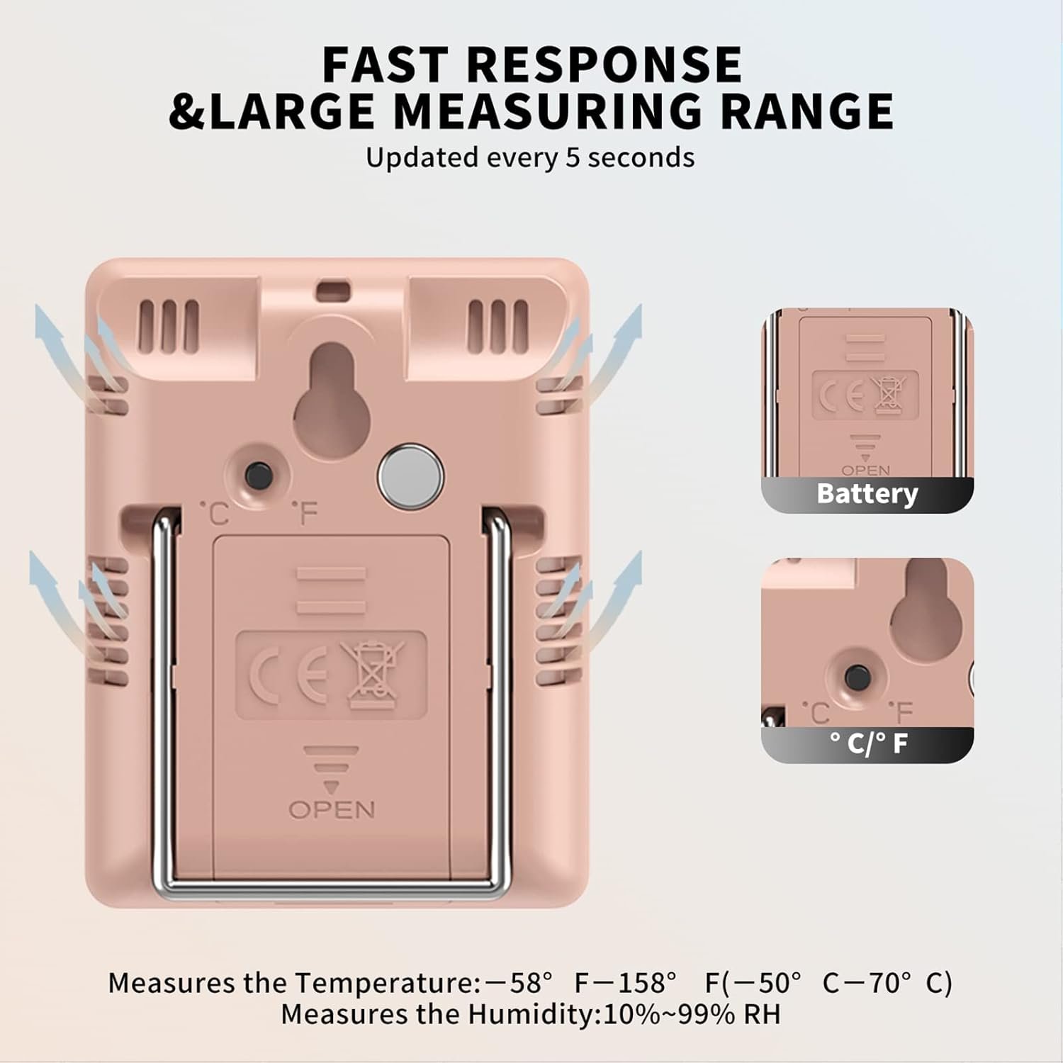 DOQAUS Indoor Thermometer for Home, Room Thermometer Humidity Meter with Temperature Humidity Sensor for Home, Bedroom, Baby Room, Office, Greenhouse, Cellar (Pink)