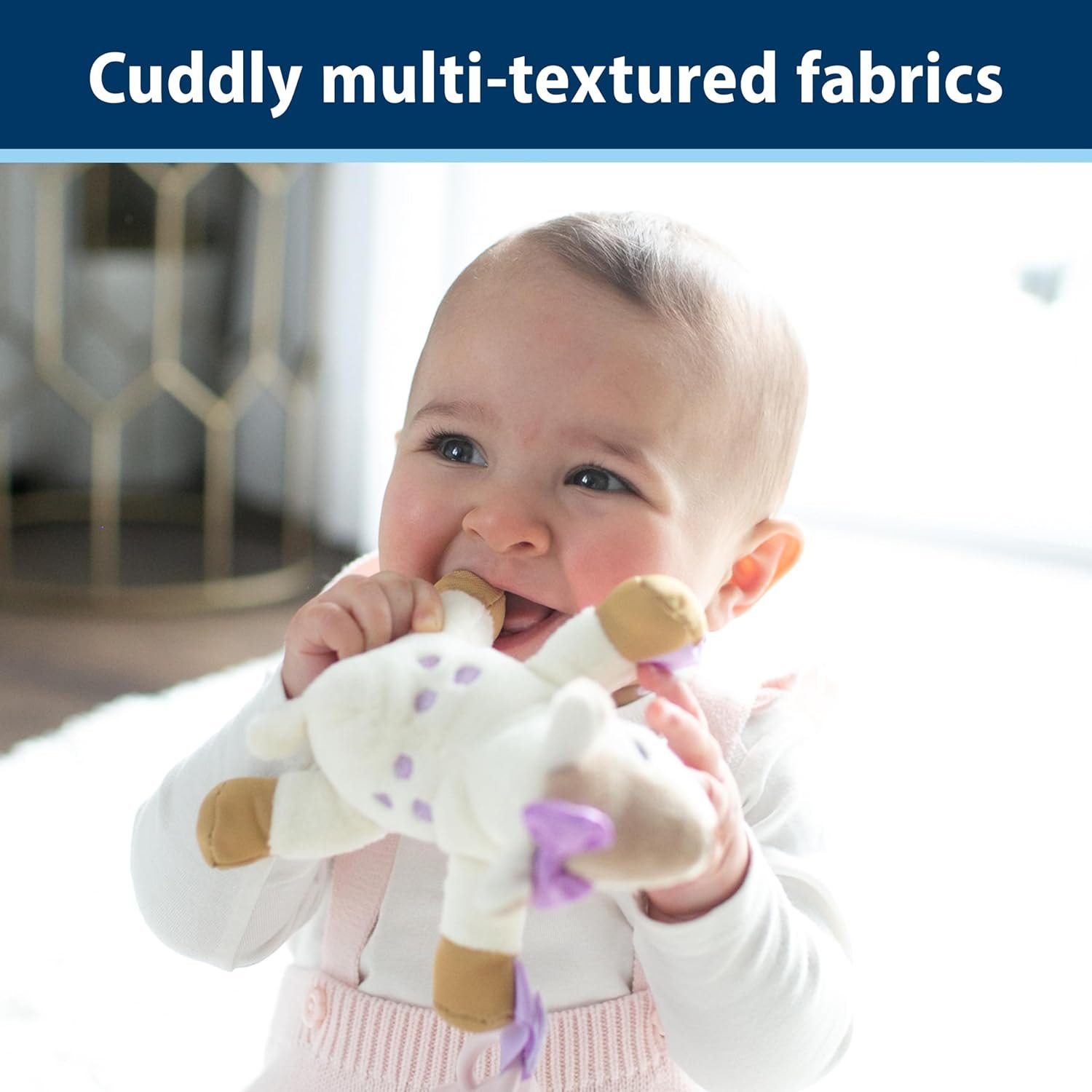 SOOTHE AND STIMULATE. The Lovey stuffed animal features soft, multi-textured materials to keep exploring fingers happy.