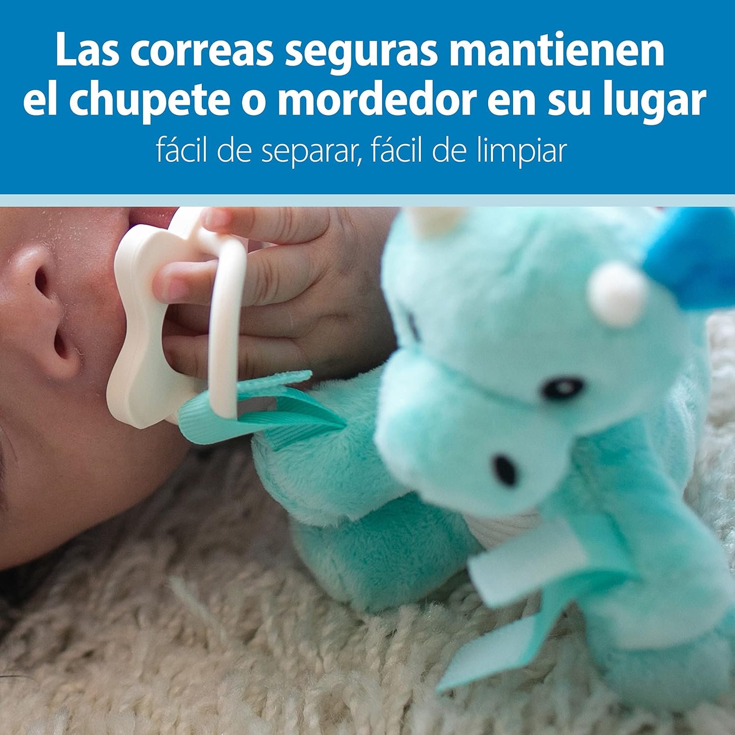 SECURE ATTACHMENTS. Strong loop attachments with hook and loop closures help ensure that removable pacifiers and teethers don’t fall off and get lost.