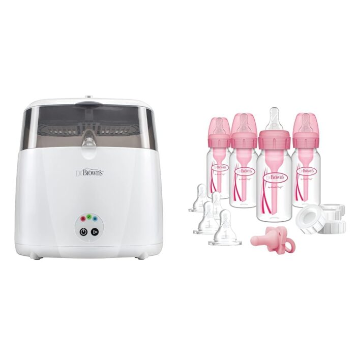 Dr. Brown’s Electric Sterilizer Bundle with Anti-Colic 4-Bottle Feeding Set, Slow Flow Nipples, and Silicone Pacifier