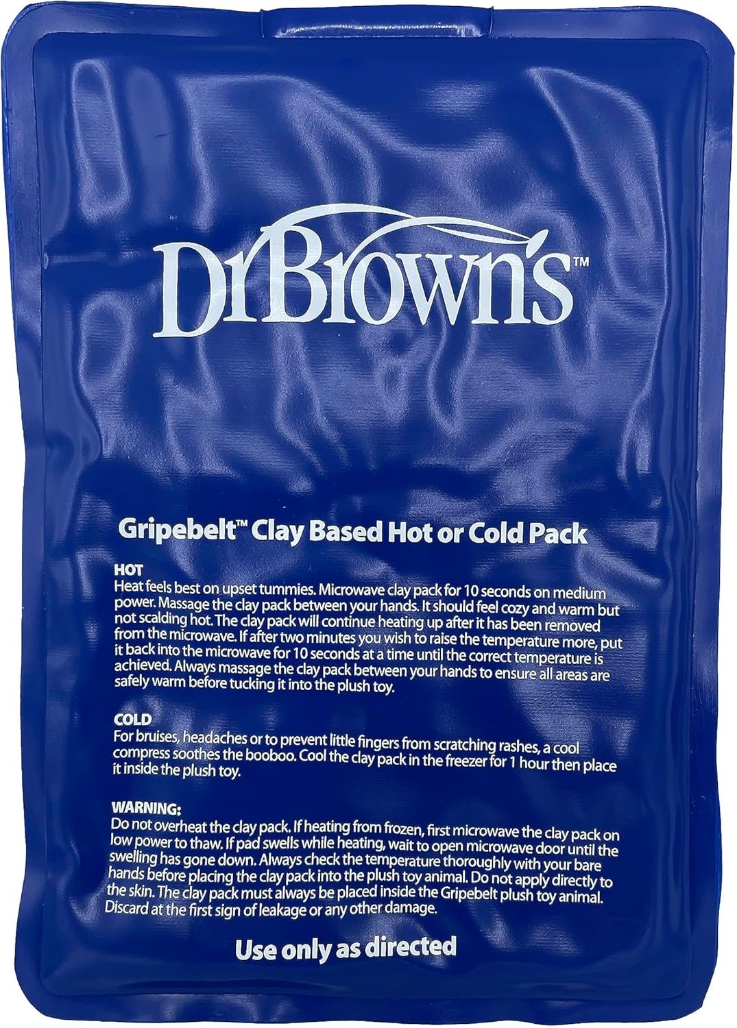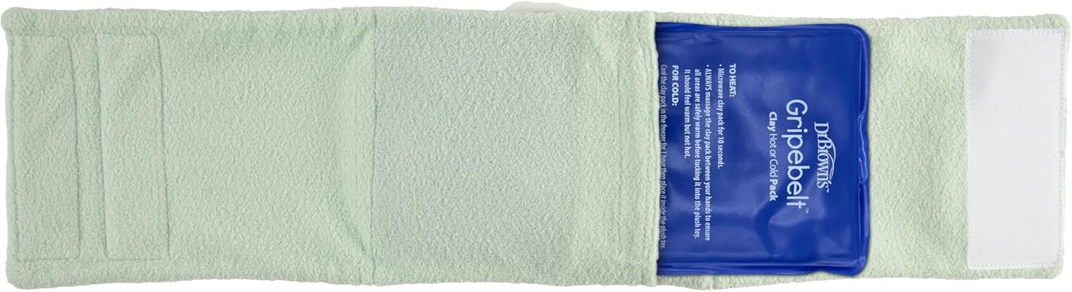 Dr. Brown’s Gripebelt baby belly band safely soothes little one’s upset tummy. The doctor-designed adjustable heated tummy wrap provides warmth and a gentle compression to help comfort an upset stomach. The baby heating pad uses extra-soft fabric to comfort your baby, while the soft, snuggly Panda keeps baby engaged. The Gripebelt belly band provides comfort externally without the struggle of giving baby medicine or medication. And it’s easy to use! Simply warm the clay pack in the microwave for 10 seconds, insert the warmed pack into the belt, and secure the adjustable band to gently compress baby’s belly. The clay pack can also be frozen and used as an ice pack. To clean, connect the fastener strips together and machine wash delicate. Tumble dry low. 0m+. Warning: Product can cause burns if too hot or left on for too long. Remove immediately at any sign of irritation or distress. Do not leave on during sleep. Do not secure strap too tightly. Monitor during use.