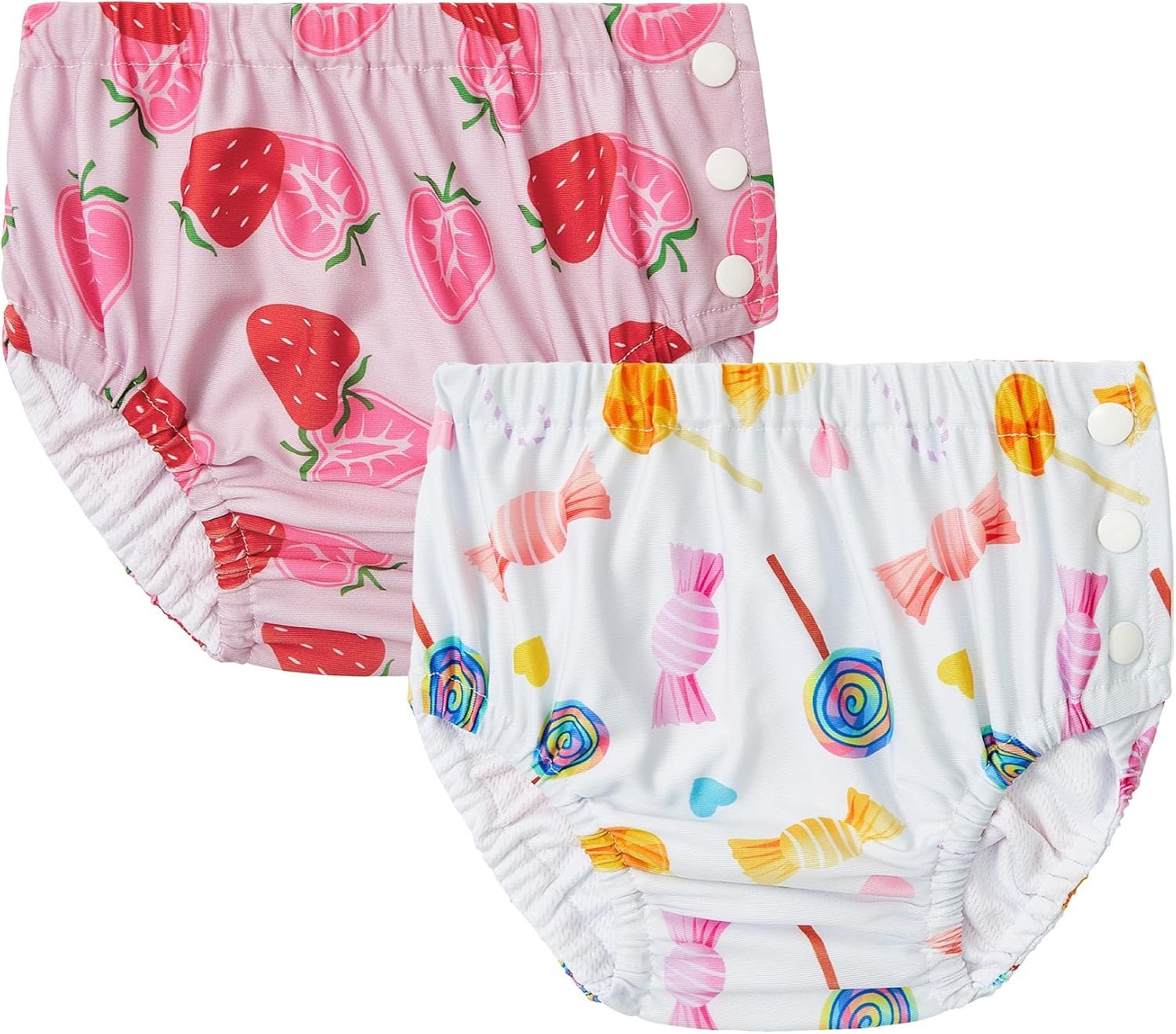 Durio 2Pcs Reusable Swim Diapers for Baby, Toddler, Newborn – Washable Water Diapers, Candy & Strawberry, 2T-3T