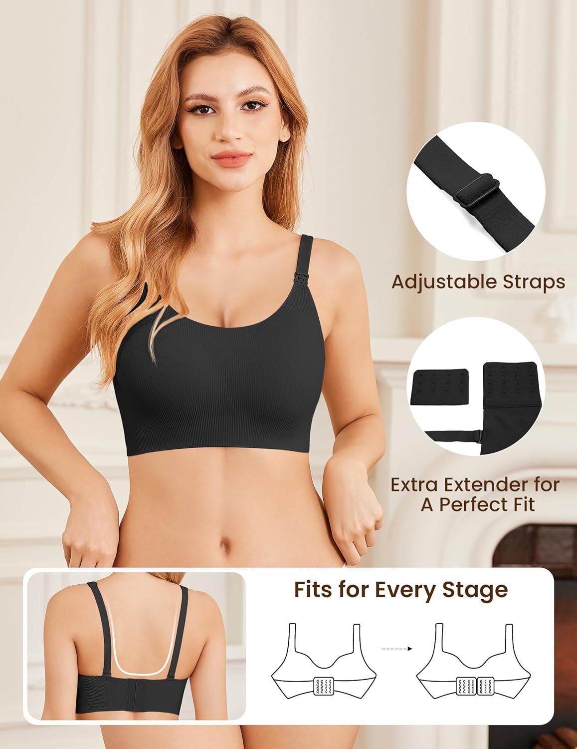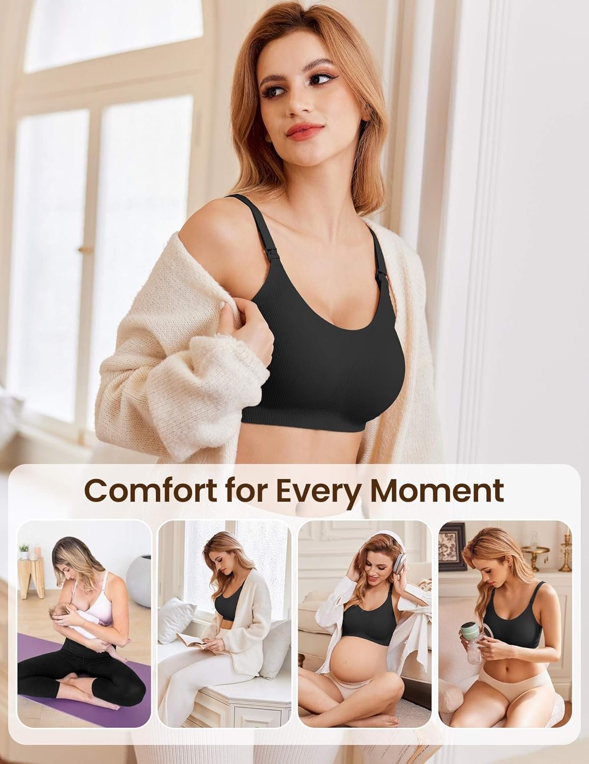 Ekouaer Nursing Bras for Breastfeeding Ribbed, Seamless Ultra Comfort Maternity Bralette Wireless Pregnancy Sleep Bra