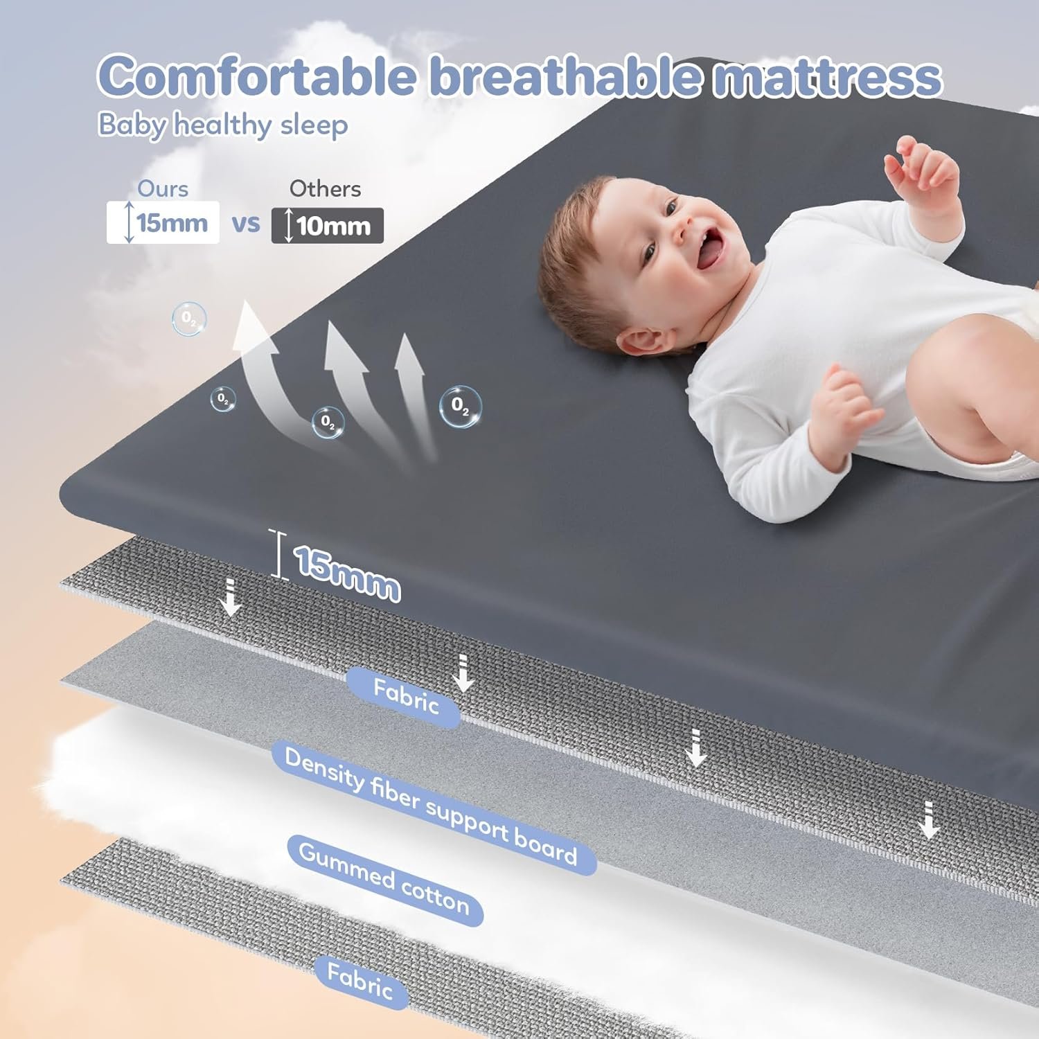 ????【Comfortable Mattress with Bed Cover】The 3 layer sponge level thickened mattress is fitted with the attached bed cover to protect the baby comfortable sleep. The cover can be dismantled and washed to ensure that the baby’s sleep and play clean and tidy