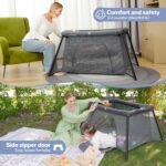 ELEMARA 3 in 1 Travel Crib for Baby,Portable Crib with Bassinet and Mattress,Lightweight Foldable Playpen with Long-Lasting Frame,Compact Baby Travel Bed, Pack n Play Playard for Toddlers,Easy Set-up