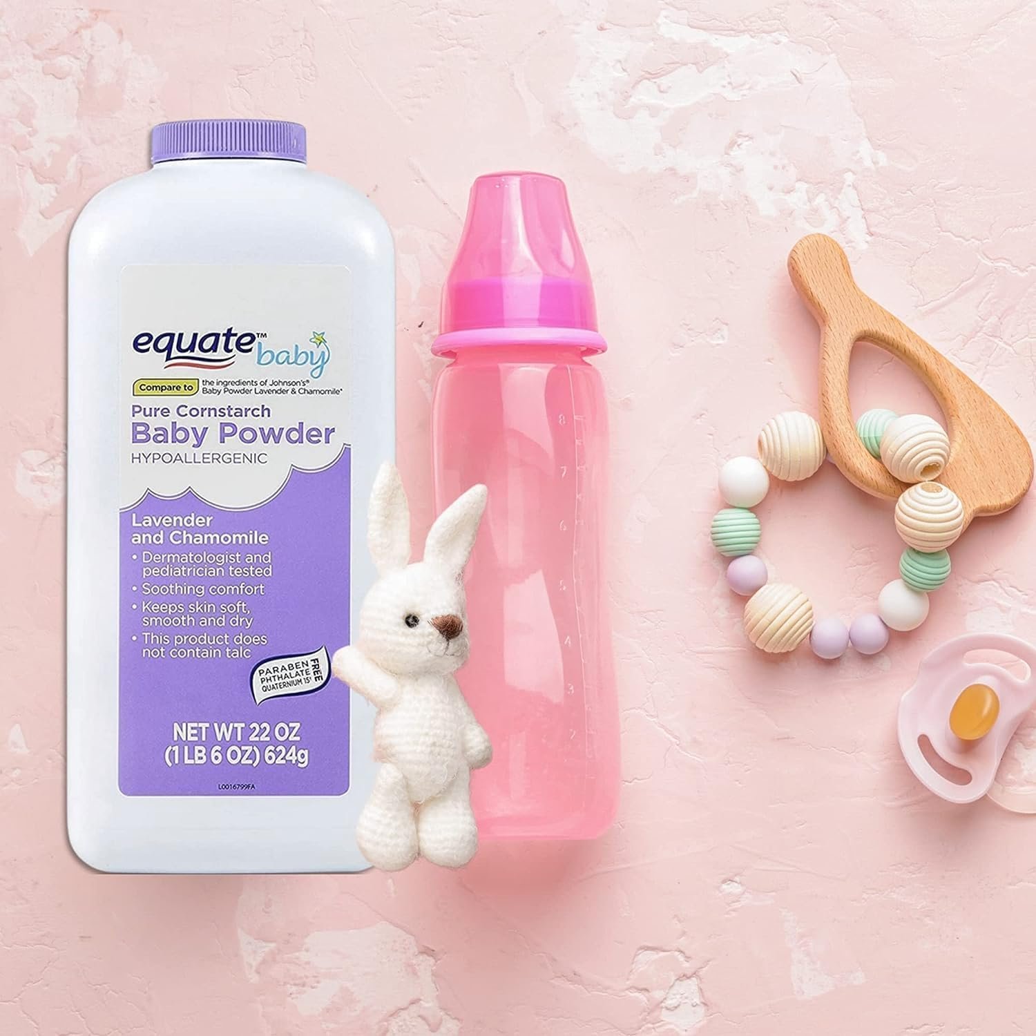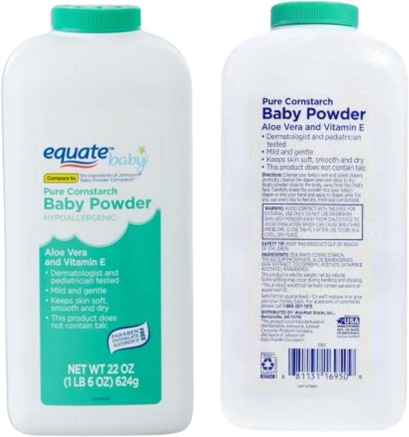 Try both Equate Lavender and Chamomile Hypoallergenic Pure Cornstarch Baby Powder and Equate Aloe Vera/Vitamin E Hypoallergenic Pure Cornstarch Baby Powder to keep skin soft, smooth and dry with the added soothing scents of lavender and chamomile. Simply shake powder into your hand and smooth onto skin, applying liberally as often as necessary. Free of talc, parabens, phthalate and quaternium 15, our dermatologist and pediatrician tested formula is safe for the entire family. For optimal use, change your baby’s wet and soiled diapers promptly, cleanse the diaper area and allow to dry. Apply powder close to the body, away from the child’s face. Carefully shake the powder into your baby’s diaper or into your hand and apply to diaper area. For personal use, apply as needed to areas prone to chafing. Keep Equate Baby Lavender and Chamomile Hypoallergenic Pure Cornstarch Baby Powder in your cabinet for sweet-smelling relief whenever you need it. Keep skin soft and happy with Equate Baby Hypoallergenic Pure Cornstarch Baby Powder. This cornstarch-derived baby powder gently absorbs oil and moisture to pamper delicate skin. It’s free of chemical additives like parabens, phthalates, and quaternium-15, and made from cornstarch, not talc. This product would not normally contain parabens or quaternium 15. Our baby powder has been tested by dermatologists and pediatricians, so you can be confident when using it with your little ones. Just cleanse skin and allow it to dry, then apply the powder to buffer skin against friction and irritation. You can also use it to prep legs for waxing, sweep off sand before applying sunscreen, prevent chafing during summer skirt season, and relieve eczema. Dust a bit between the sheets for cool, restful sleep during hot summer nights, or sprinkle it into smelly shoes to refresh them. With so many uses, you’ll always want to have a supply of Equate Baby Hypoallergenic Pure Cornstarch Baby Powder on hand.
