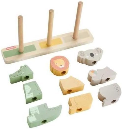 Fisher-Price Wood Baby Toy Stack & Sort Animals, 10 Wooden Pieces for Developmental Play for Infants & Toddlers Ages 1+ Years