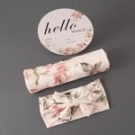There are no zippers, no snaps. Our baby girl blanket will be safe to your baby. The paper announcement card can be written baby’s date and name