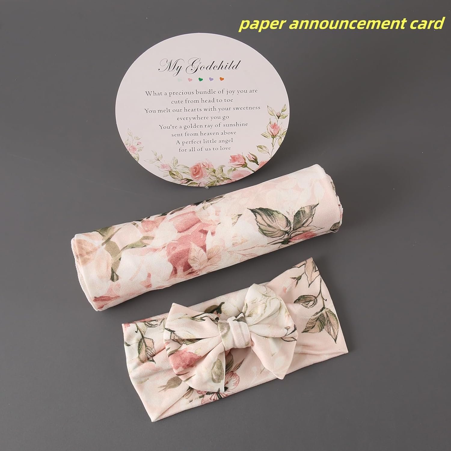 Galabloomer Newborn Receiving Blanket Headband Set Flower Print Baby Swaddle Blankets (Vintage)