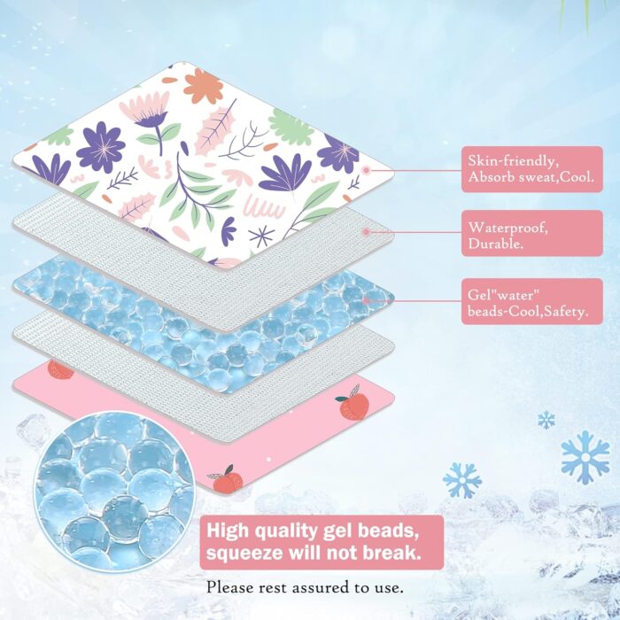 REVERSIBLE: One pack with different patterns on the front and back. Can be replaced at any time. Suitable for summer or hot .If you want to the ice pad more cool, you can put the pad in the refrigerator (not in the freezer) for 2-3 minutes.Please make sure the liner temperature is suitable before use .