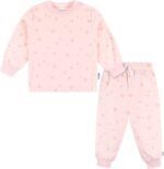 Give your little one the best in comfort with these microfleece pajamas designed to provide your baby or toddler with a soft and cozy night’s sleep. Designed for cooler weather, this matching top and bottom set boasts comfort-stretch at the neck, wrists, waist, and ankles, ensuring easy movement. Complete with a delightful pattern and decorative twill tape, it’s a charming choice for your little one’s bedtime. This pajama set is made from flame resistant for child safety.
