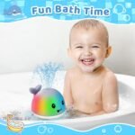 Gigilli Upgraded Baby Bath Toys, Rechargeable Light Up Bath Toys for Kids 1-3, Baby 6-12 12-18 Months Whale Bath Toy Sprinkler, Fountain Bathtub Toys Toddler Newborn Birthday Gifts