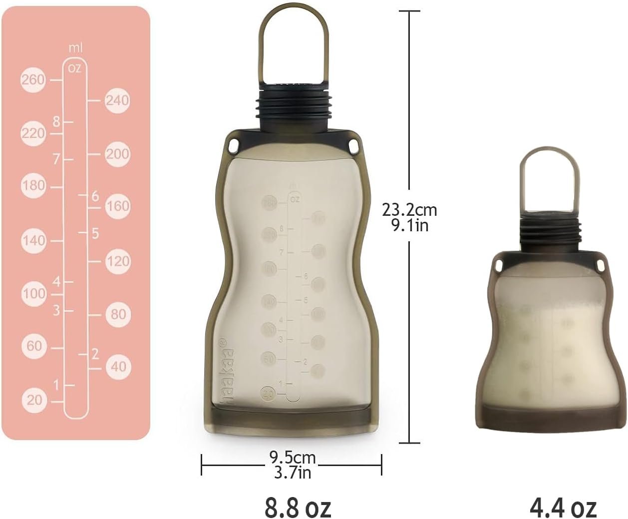 Dual Capacities: Choose between the large 9 oz and small 4.5 oz options. Convenient for on-the-go feeding, making it easy to carry and nourish your little one wherever you are.