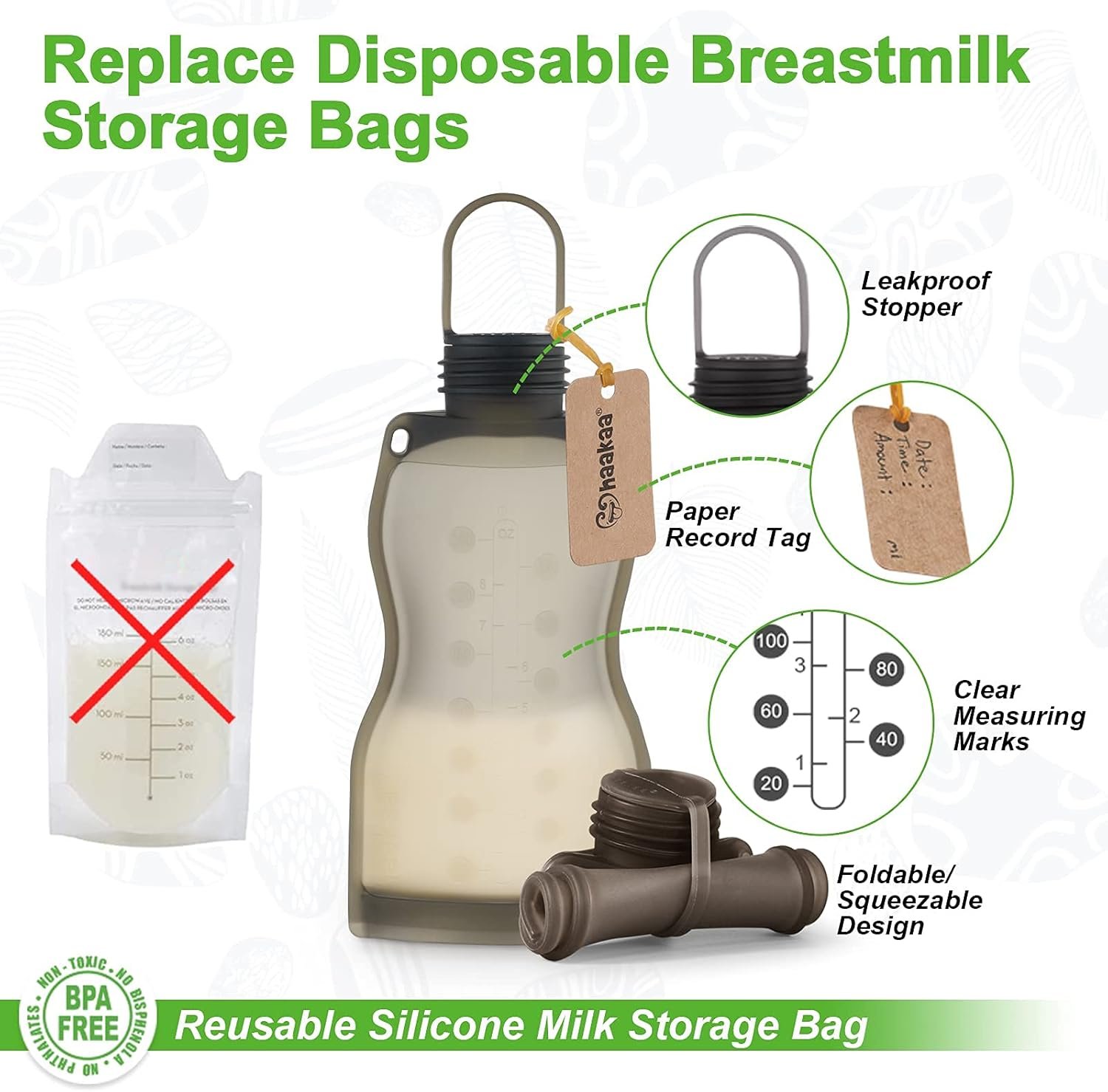 Eco-friendly — Fantastic eco-friendly alternative to disposable plastic milk storage bags. Made of food grade silicone and can be reused over and over again, reducing the impact that single-use plastic makes on our environment.