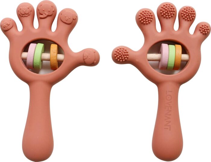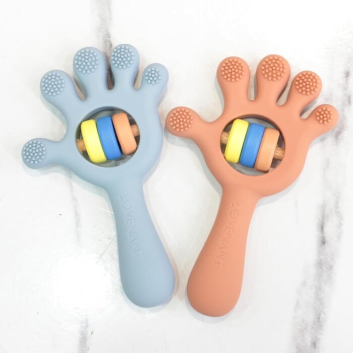 Help your little one through the teething phase with our Hand-Shaped Silicone Baby Teether. Designed with both fun and functionality in mind, this unique teether features a soft, flexible hand shape with adorable animal imprints on each finger. It’s crafted from 100% food-grade silicone that’s BPA-free, non-toxic, and safe for babies to chew on. The teether also includes multi-textured surfaces to massage sore gums and encourage sensory exploration, while the built-in rattle keeps babies entertained. Its lightweight, easy-to-hold design makes it perfect for little hands, helping babies develop their motor skills as they chew and play. Whether at home or on the go, this teether is the perfect companion to soothe your baby’s discomfort and provide hours of enjoyment.