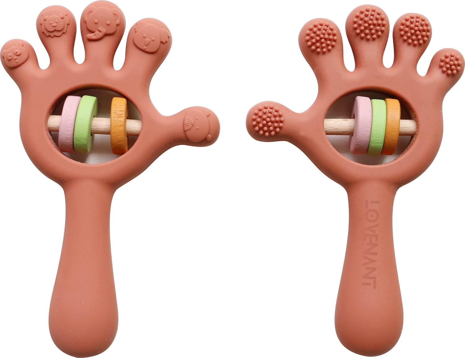 Hand-Shaped Silicone Baby Teether with Animal Imprints – BPA Free, Soft & Safe Teething Toy for Babies – Perfect for Soothing Gums, Sensory Development, and Early Learning (red)