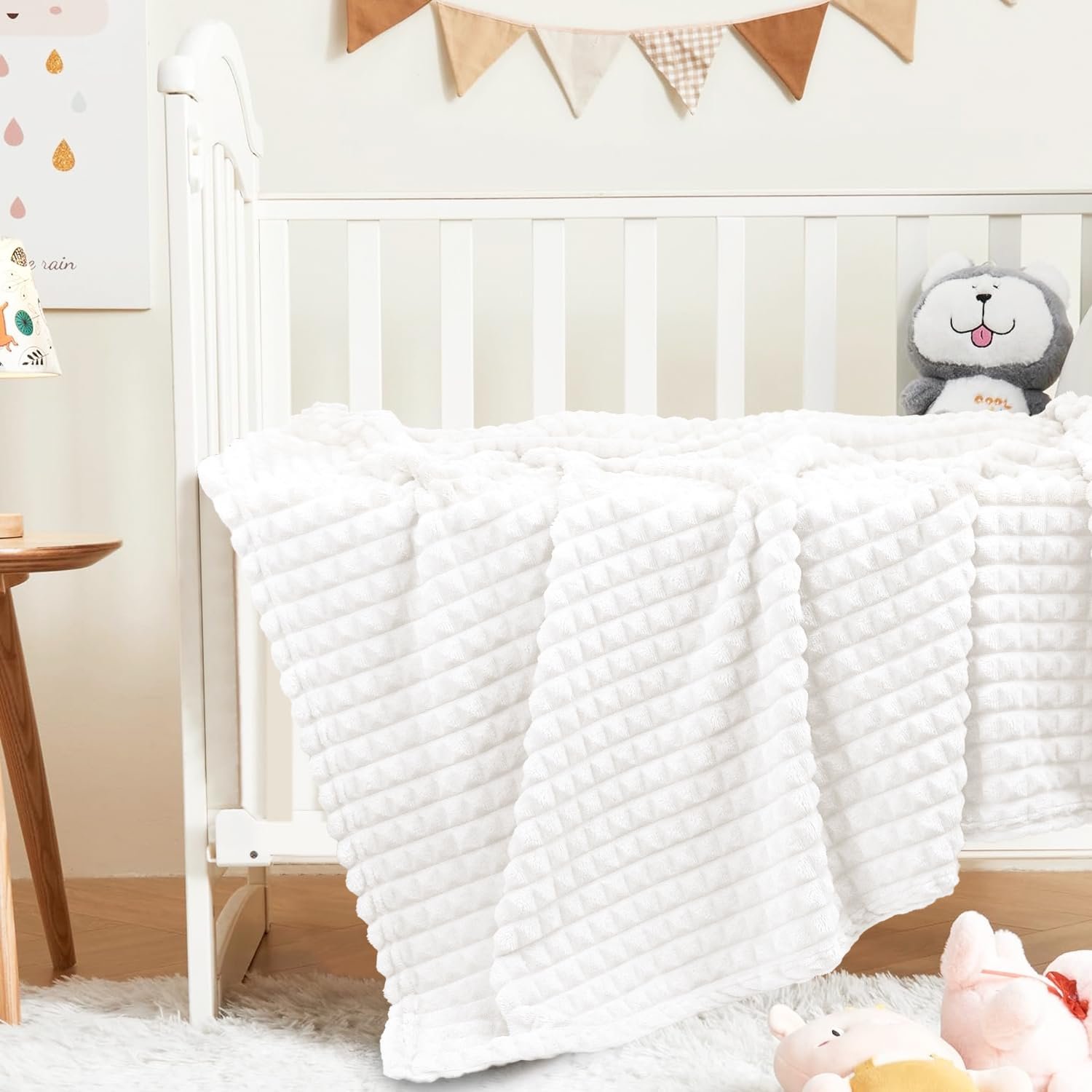 HOMRITAR Baby Blanket for Boys Girls Fleece Super Soft Plush Fuzzy Cozy Toddler Blanket with Square 3D Jacquard Grid Design Luxury Lightweight Bed Blanket for Newborn Infant Cream, 30 x 40 Inch