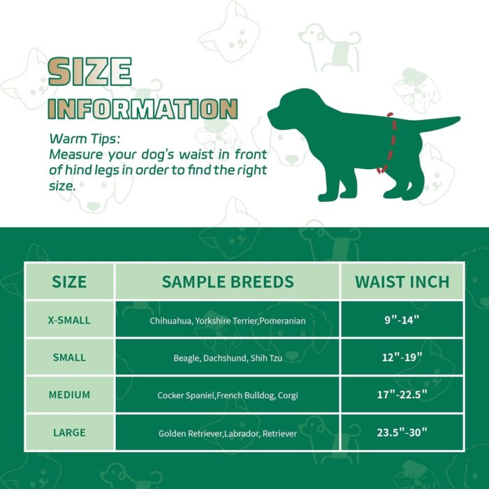 ULTRA-THIN & BREATHABLE: Our male dog wraps feature an ultra-thin design, Soothing even in hot weather, roviding maximum comfort for your furry friend while ensuring effective absorption of liquids. No more worries about leaks or messes! Designed for small male dogs with 9-14 inch waists