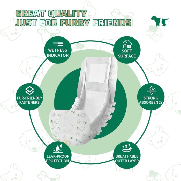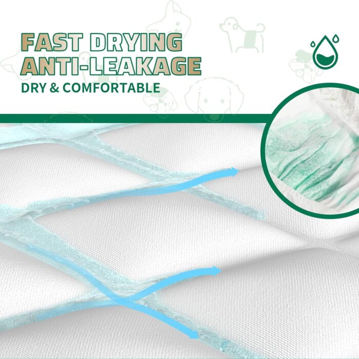 SUPER ABSORBENCY: With advanced absorbent SAP materials, our puppy diapers offer superior absorption capacity. Whether dealing with occasional accidents, male marking, or incontinence , our male dog diapers will keep your dog dry and comfortable throughout the day or night