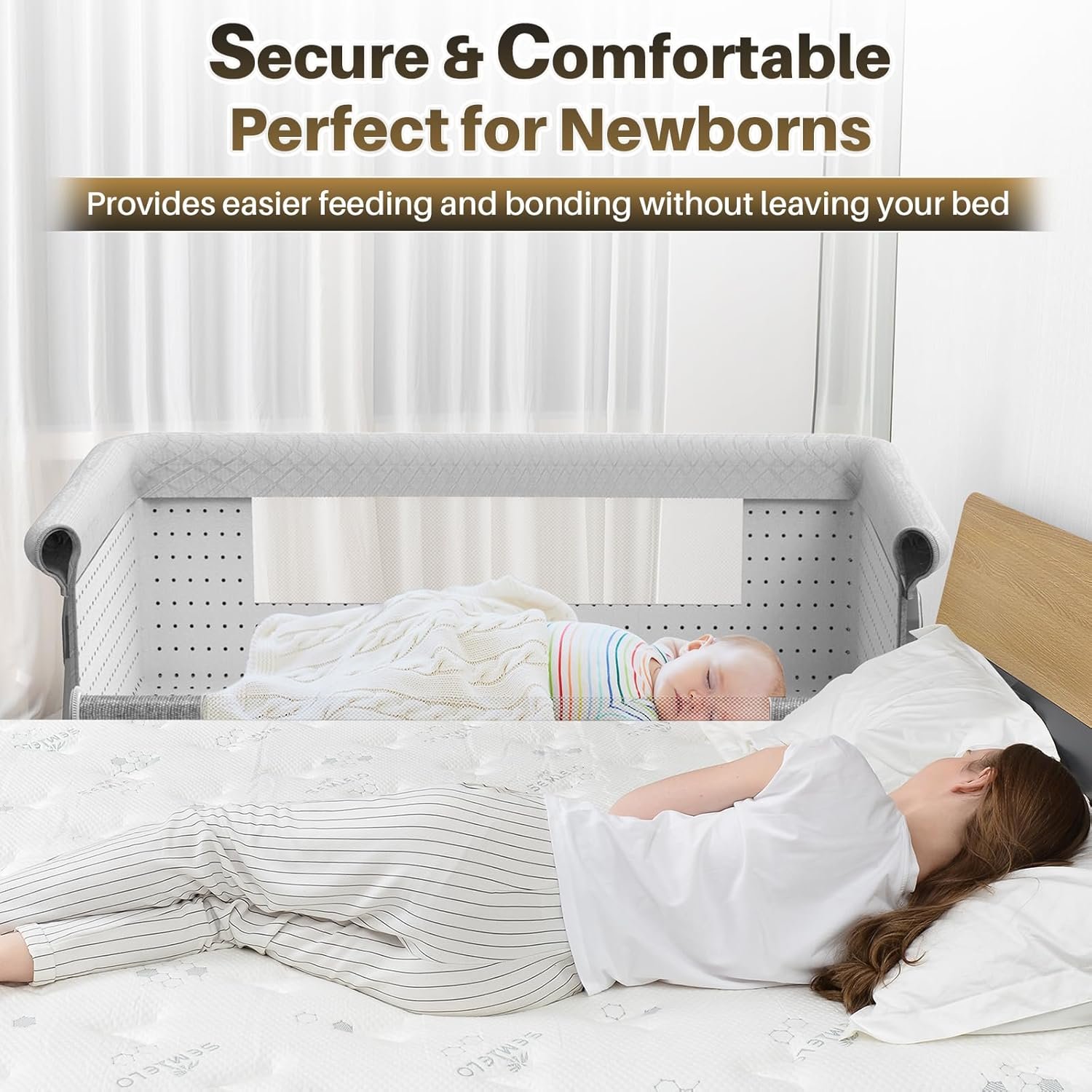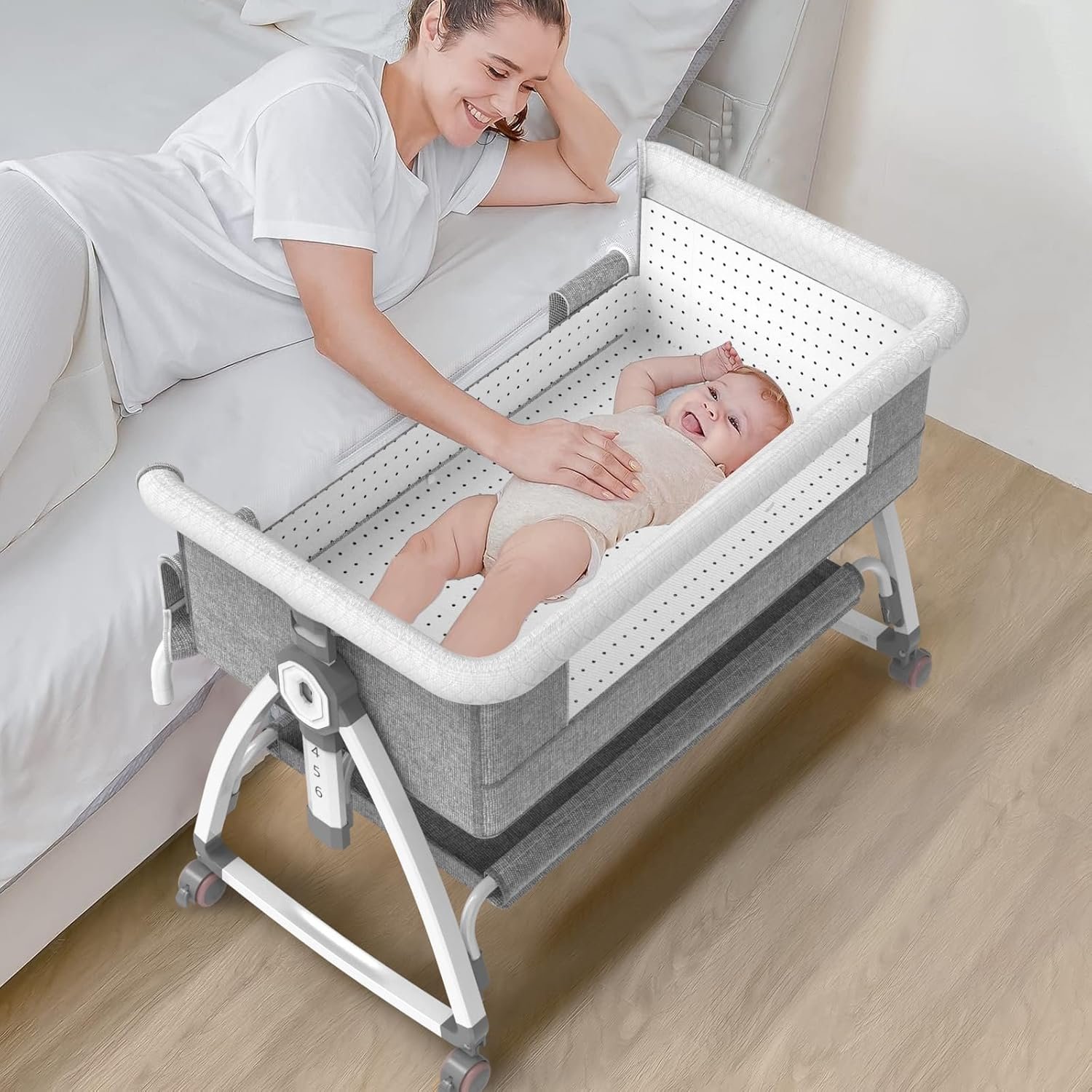 Adjustable Height & Tilt Function: Easily adapts to your bed with 6 height levels from 27.5” to 32.6”, and features a gentle tilt function to help reduce baby reflux and promote better sleep.