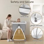 Inaya Baby Bedside Bassinet, Multi-function Portable Bassinet with Adjustable Height, Breathable Mesh, Wheels, and Mosquito Net – Easy-Fold Bedside Sleeper for Newborns & Infants