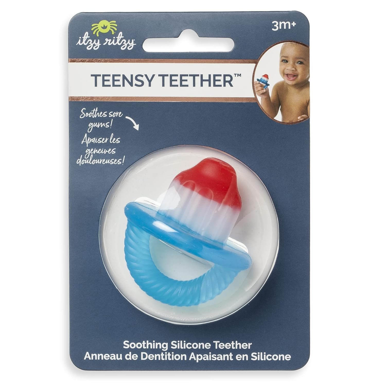 BABY TEETHING RELIEF: The Itzy Ritzy Teensy Teether is designed to relieve your baby’s sore gums. Made with a flexible, hollow silicone nipple, this baby teether toy features a gentle texture that helps to soothe discomfort from teething and incoming molars.