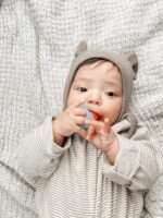 EASY TO HOLD: The Teensy Teether’s handle is thoughtfully crafted with an adorable cable design, making it easy for tiny hands to grasp. This ensures your little one can comfortably hold and manipulate the infant teether, promoting self-soothing and motor skill development.