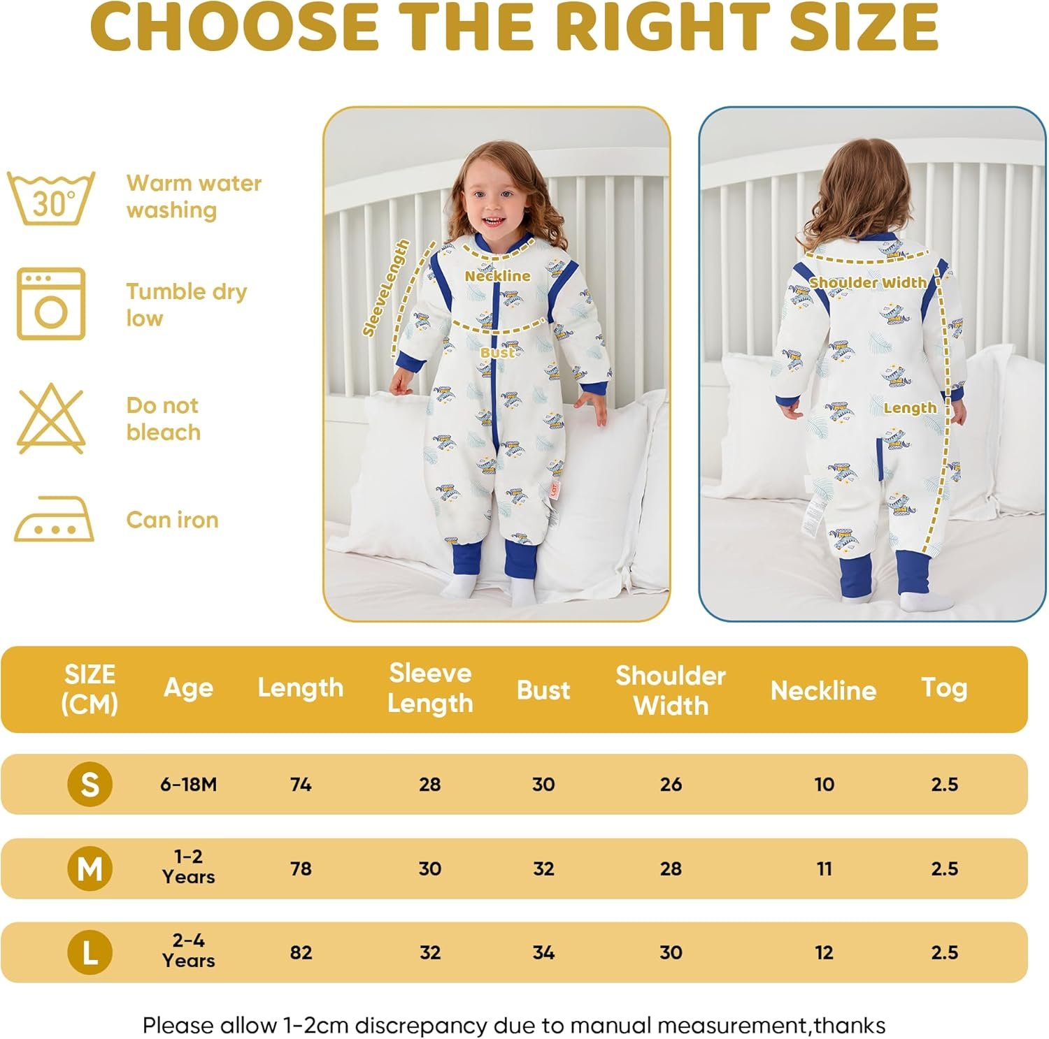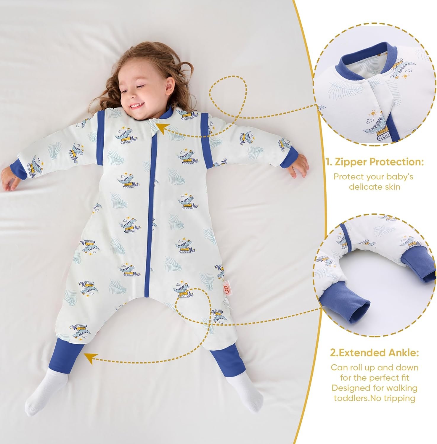 LAT Baby Sleep Bag with Feet Winter,3-way zipper Wearable Blanket,Warm Sack for Toddler Thicken 2.5 TOG-Removable Sleeves