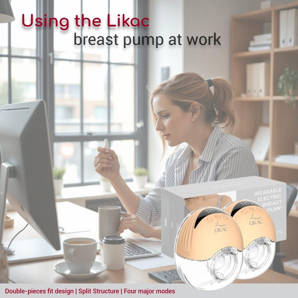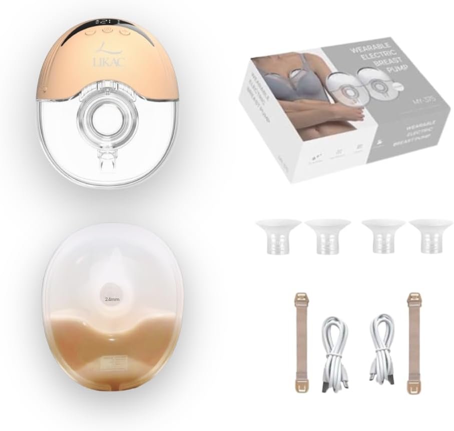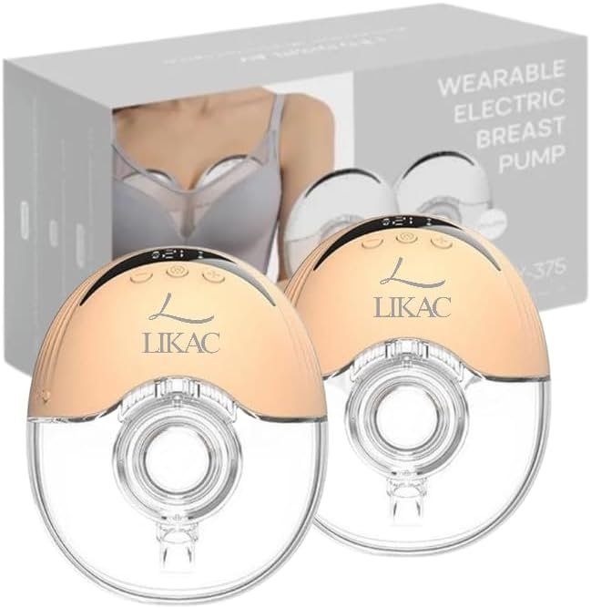 The Likac Double Wearable Electric Breast Pump is thoughtfully designed for modern moms who seek freedom, comfort, and efficiency throughout their breastfeeding journey. Featuring a wireless, hands-free design, this wearable breast pump allows you to express milk effortlessly—whether you’re working, traveling, or enjoying precious moments with your baby. Its 4 smart modes (lactation, suction, frequency conversion, and standard) and 12 adjustable intensity levels offer a fully customizable, gentle, and pain-free pumping experience, making it a true postpartum essential. Made from BPA-free, food-grade silicone and PP, this portable breast pump is both safe and soothing for mom and baby. The ultra-quiet motor (≤60 dB) ensures discreet use, day or night, so you can build your liquid gold supply without interruption. Powered by a 1200 mAh rechargeable battery, the Likac breast pump provides over 1.5 hours of continuous use on a single USB Type-C fast charge. Its compact and lightweight design fits seamlessly into any baby bag, giving you the flexibility to pump anytime, anywhere, without missing a beat. Each complete set includes two 210 ml bottles, multiple flange inserts (19/21/24 mm), a soft silicone valve, a USB charging cable, and an intuitive LED touch screen for effortless control. The Likac hands free breast pump is a must-have for every new mom’s baby registry, combining comfort, innovation, and portability to support your breastfeeding goals, from newborn essentials to your daily routine.