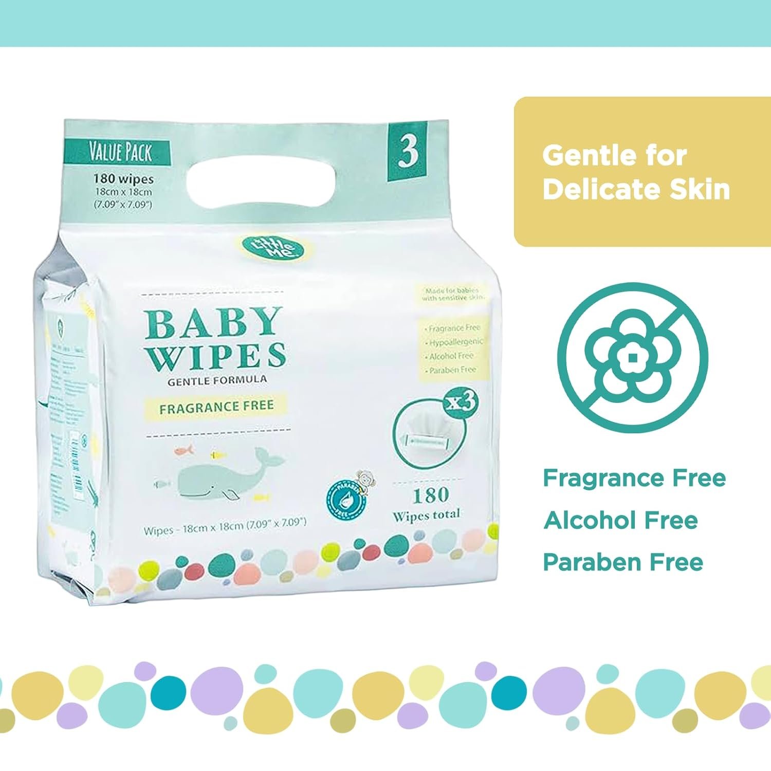 Little Me Baby Wipes Gentle Formula, Fragrance-Free Hypoallergenic Baby Wipes, 180 Count