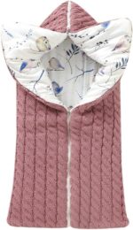 LLmoway Newborn Winter Sleeping Bag Baby Girl Warm Swaddle Blanket Soft Thick Knit Zipper Sleep Sack Stroller Wrap Rose Red