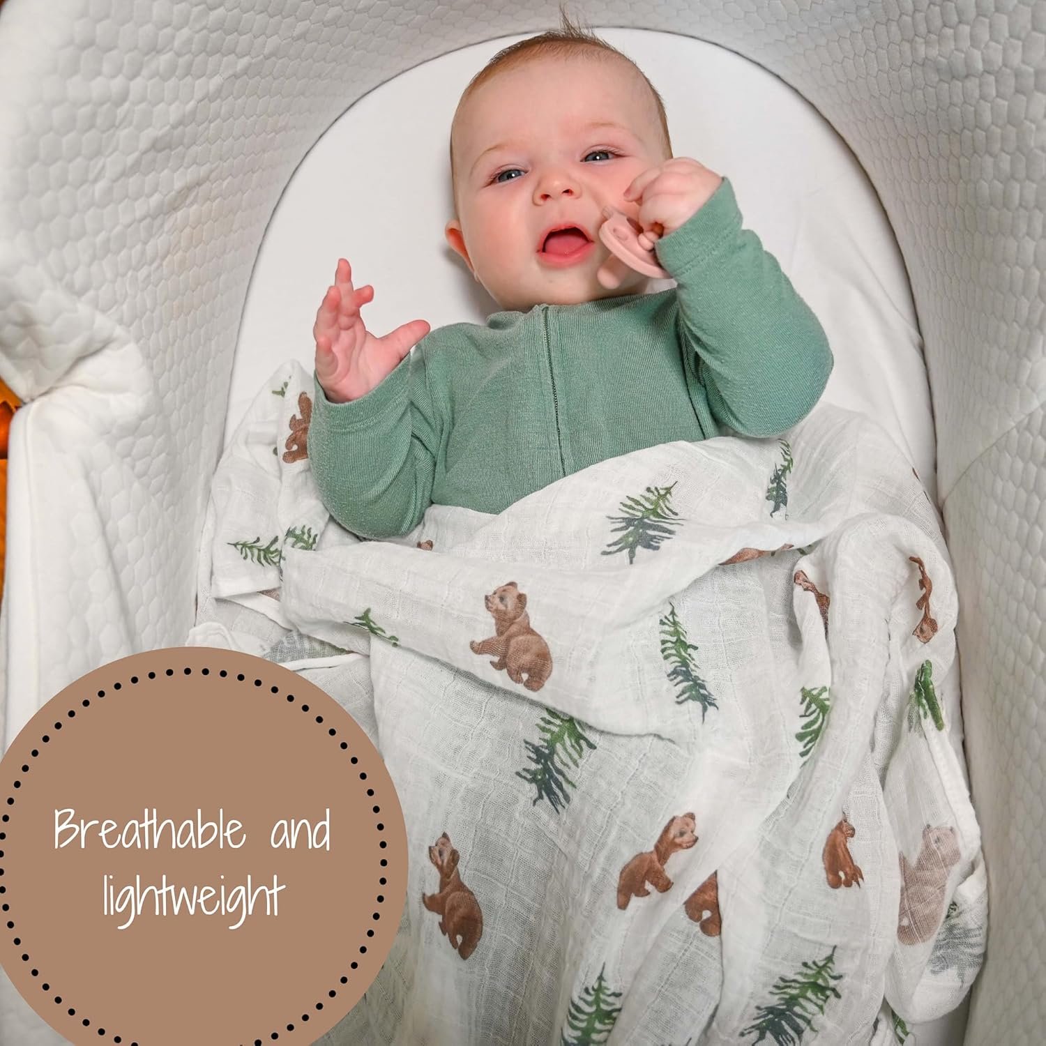 LollyBanks Swaddle Blanket, 100% Cotton Muslin Swaddle Blankets for Boys and Girls, Large 47 x 47 Inches Newborn Swaddle Receiving Blanket, Breathable Baby Blanket, Registry (Baby Bear Cub Theme)