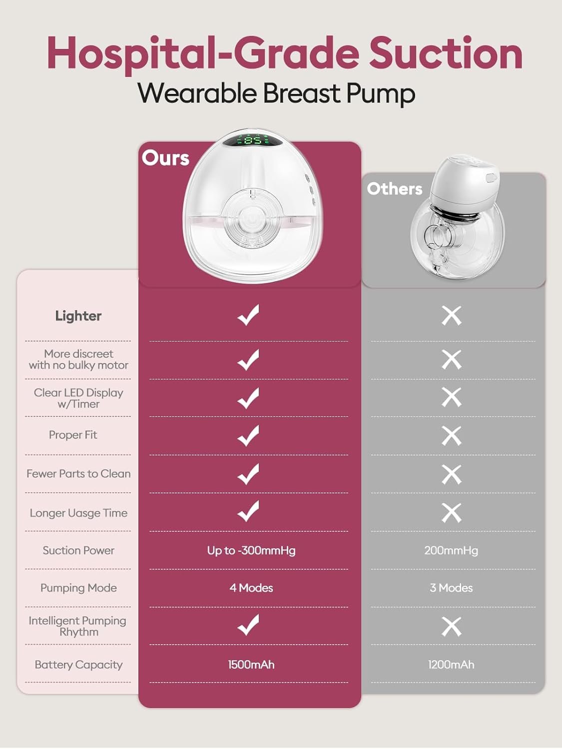 【More Efficiency & Comfort】The Lulia hands free breast pump offers 4 modes(massage, comfort, suction, mixed) and 9 suction levels, you can easily adjust the suction strength based on your milk flow and comfort level. Our wearable double pumps for breastfeeding is designed to mimic your baby’s natural sucking rhythm, which helps to optimize milk production and ensure that mothers can produce more milk in a shorter period of time