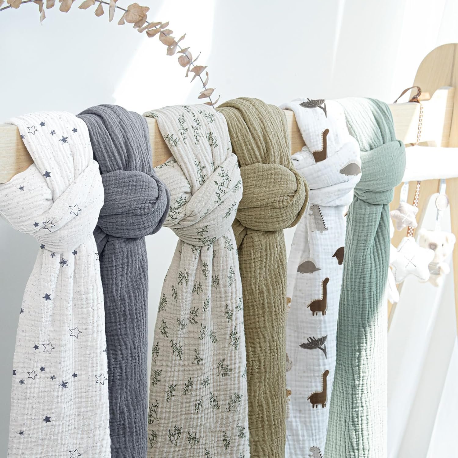 Versatile Swaddle Blanket: Suitable for various uses such as swaddling, nursing cover, burp cloth, bath towels, diaper changing mats, play mats, and more, making it essential for parents on the go. Additionally, it can be used as a sun shield when covering strollers, ideal for outdoor activities to prevent sunburns for infants.