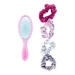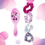 LUV HER Disney Junior Minnie Mouse Hair Accessory 5 Pcs Set – 1 Large Minnie Mouse Hair Brush + 4 Minnie Scrunchies – Hair Accessories – Pink Detangling Brush – Elastic Hair Ties Ropes Scrunchie