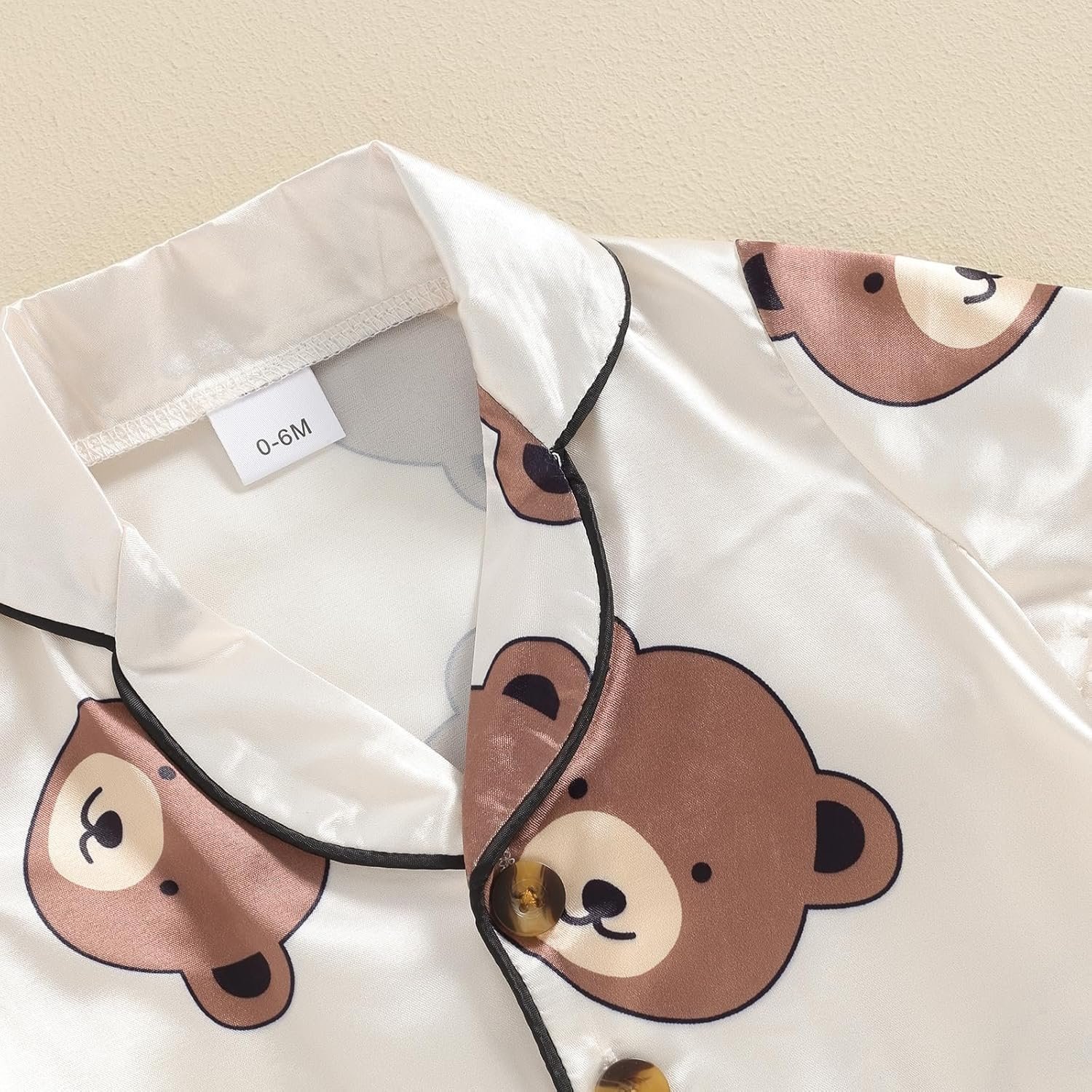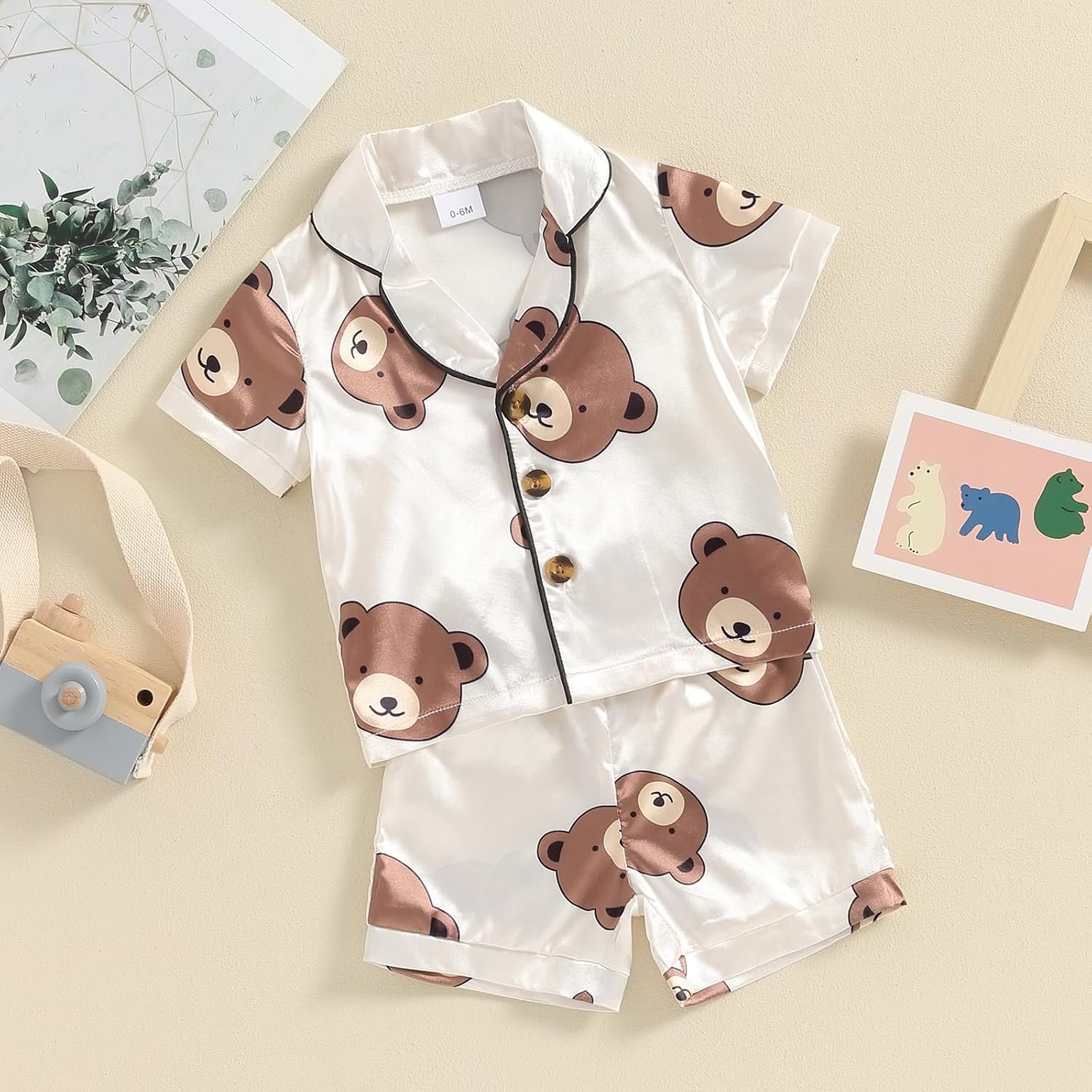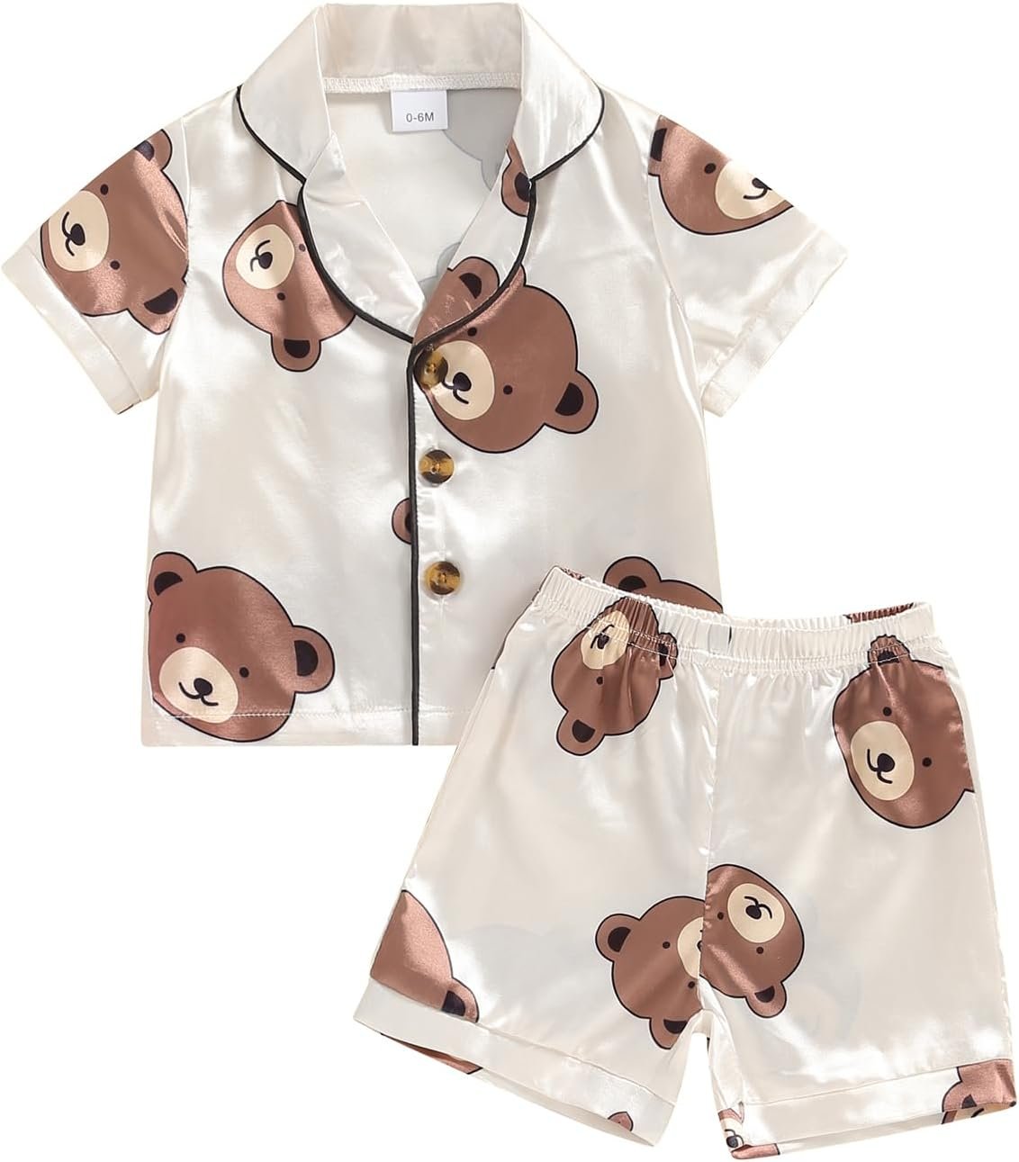 MAINESAKA Kids Baby Girl Boy Satin Pajamas Set Short sleeve Button Down Shirt And Shorts Pjs Summer Sleepwear Nightwear