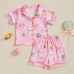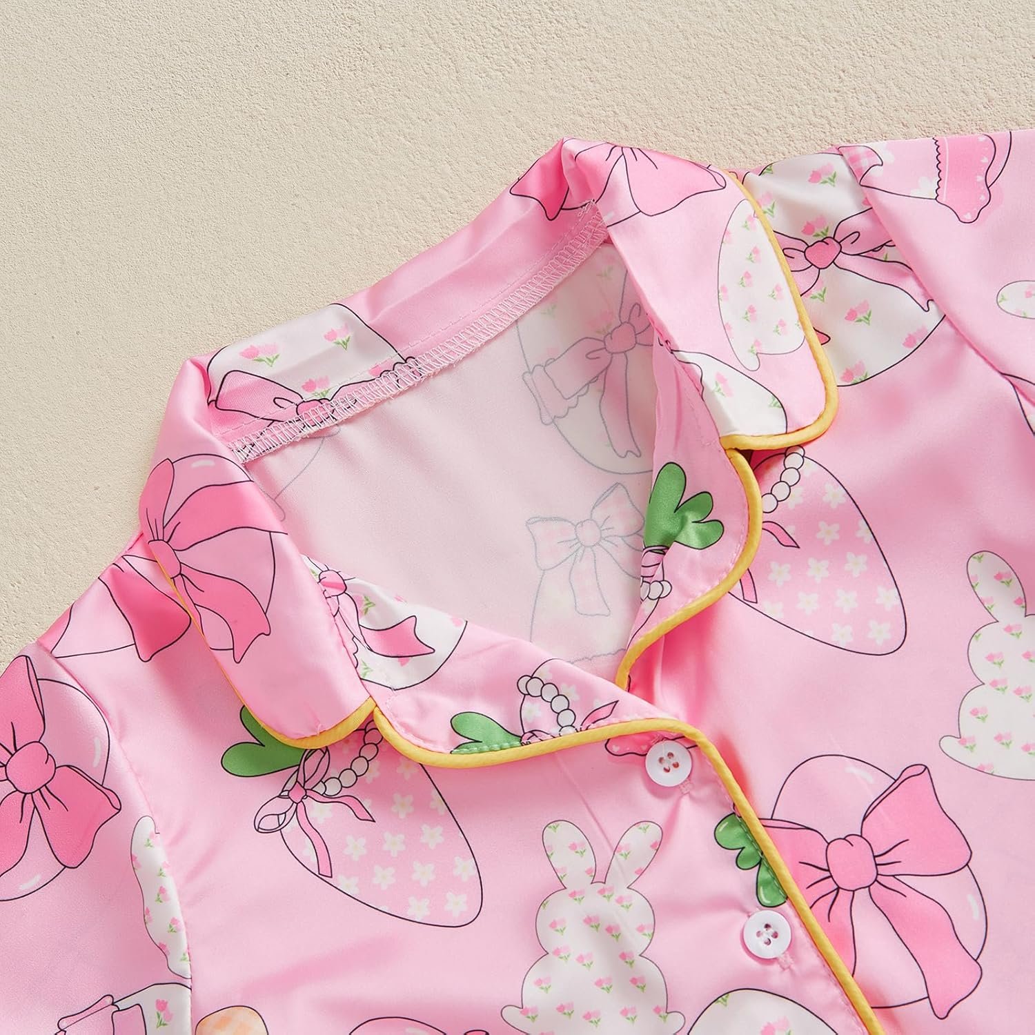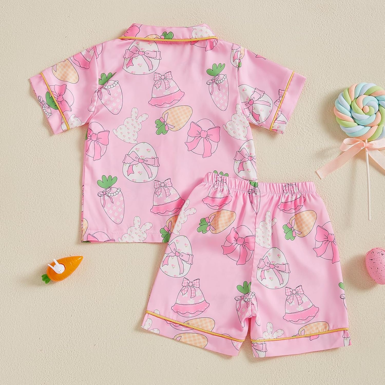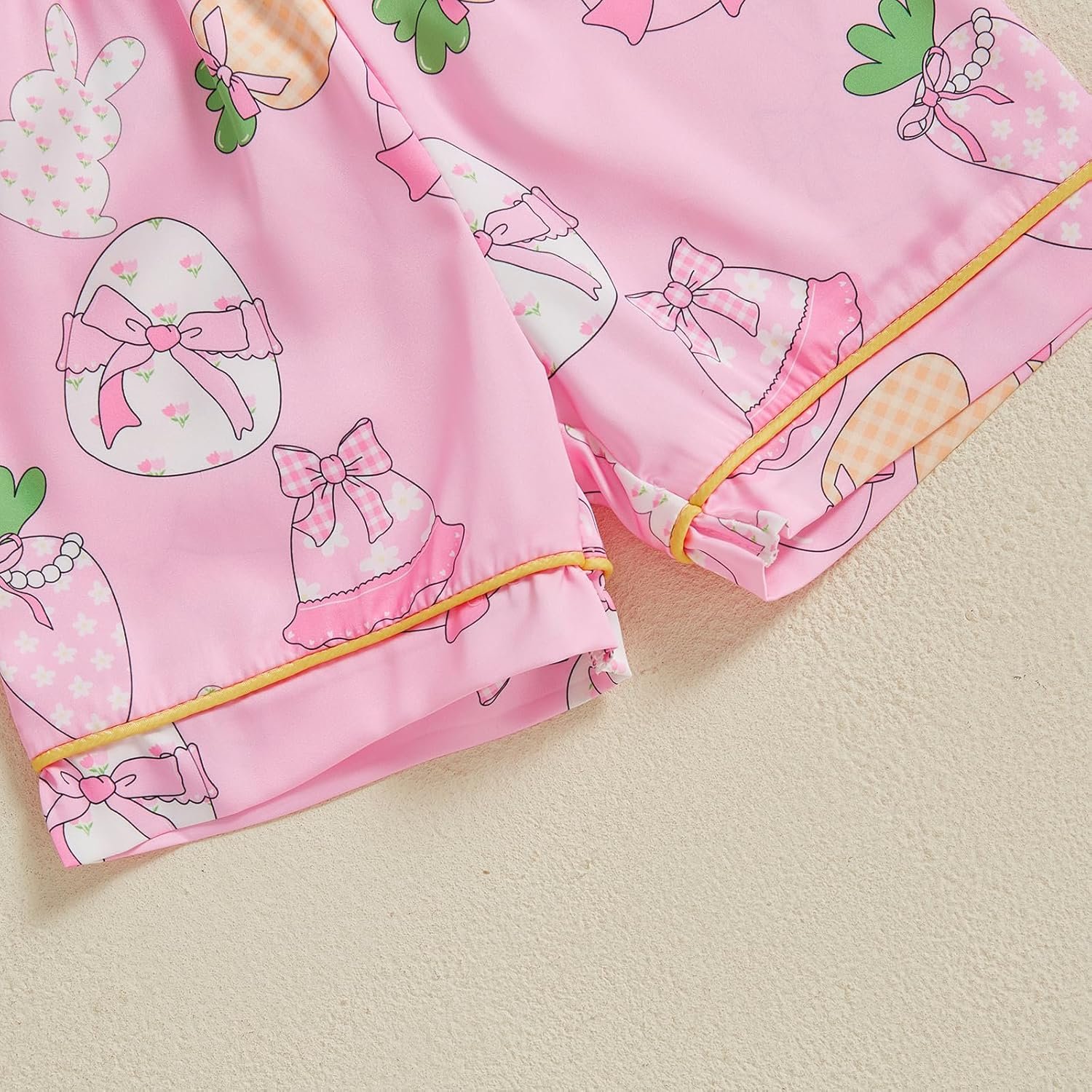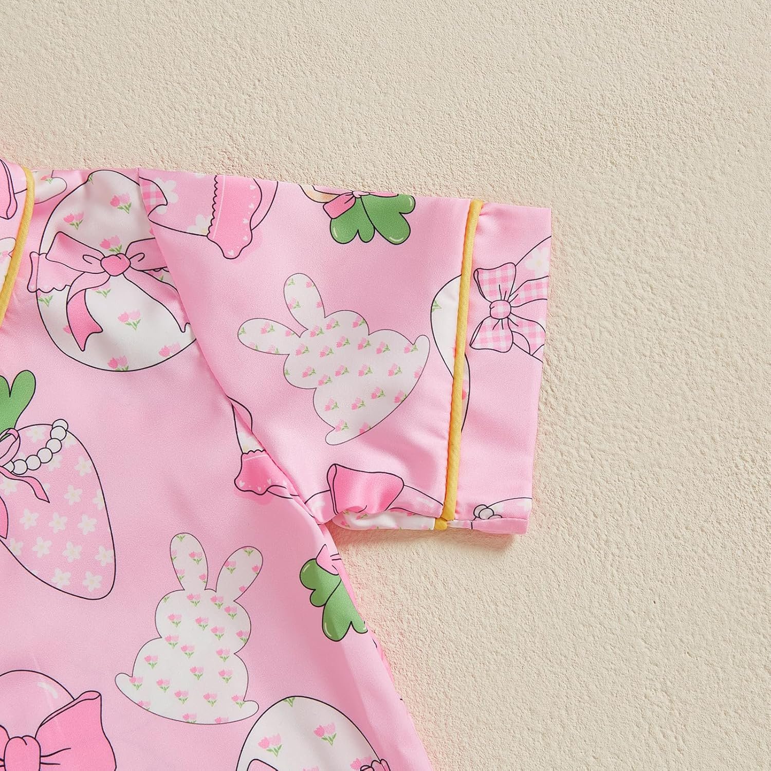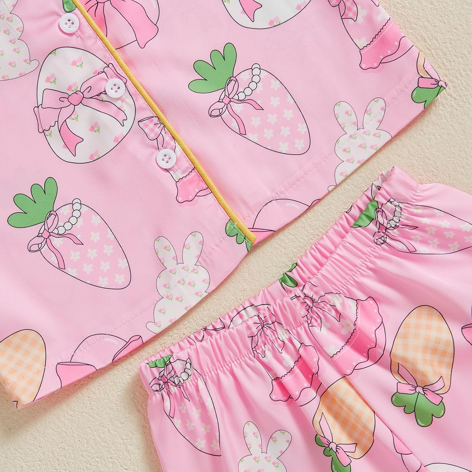 MAINESAKA Toddler Baby Girls Easter Pajamas 2 Piece Bunny Pjs Set Short Sleeve Button Down Top And Shorts Summer Sleepwear