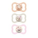 The MAM Air Day & Night Collection pacifiers for baby has a shield that is specially designed for babies 6+ months with sensitive skin. The extra wide air holes allow plenty of circulation around your baby’s mouth and even allow you to peek at their little smile. One pacifier in this pack has a special glow in the dark feature that helps keep your baby’s silicone pacifier in sight without having to turn on the light and disturb their sleep. All MAM pacifiers feature our trademarked SkinSoft silicone nipples that feel like mom and help babies transition from being breastfed to using a pacifier. In fact, market research showed that MAM nipples are easily accepted by babies of all ages, with 94% nipple acceptance among babies tested*. The textured nipple stays easily in baby’s mouth and is just the right size for your 6+ months old baby so their growing teeth, palate, and jaw will be safe. Additionally, the symmetrical orthodontic nipple shape means you won’t have to worry about uneven pressure or fussing to turn the pacifier “right side up”. *Market research 2010-2020, tested with 1,572 babies