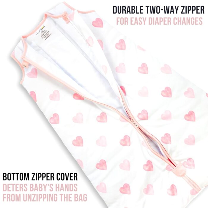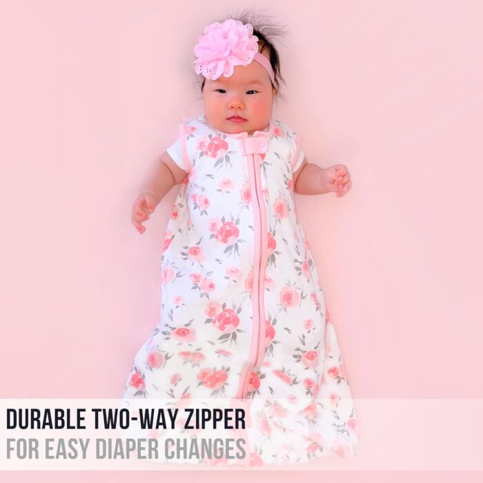 No struggling with those midnight diaper changes! Our sleeping sacks feature high quality and durable 2-way zippers, which unzip from the bottom for easy diaper changes. Also, no struggling to connect the zipper at baby’s chin in the middle of the night! 2-way zipper unzips from the top and makes it very easy to use.