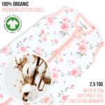 【MADE WITH ORGANIC COTTON】— The Mama Cheetah 2.5 TOG Baby Sleeping Bag is made of premium 100% organic cotton shell, with ultra soft polyester fill for extra warmth, which is perfect for cooler months. The organic cotton interlock minimizes the risk of overheating and keeps your baby warm and comfortable. Please be mindful of the TOG rating when ordering the right sleeping bag for your baby.
