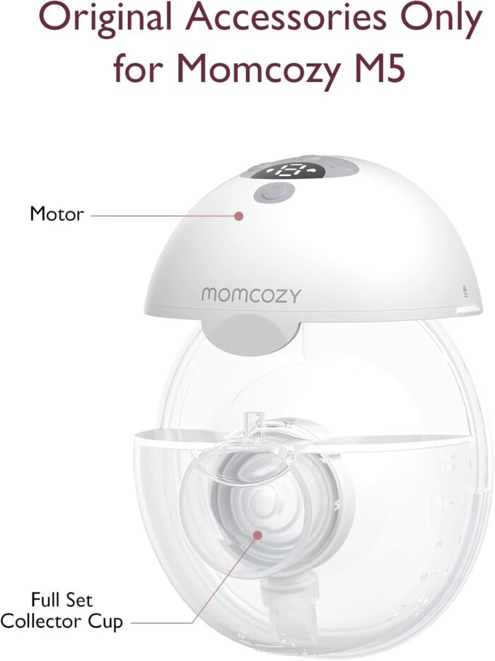Momcozy Full Set Collector Cup Only Compatible with Momcozy M5 NOT for Others. Original M5 Breast Pump Replacement Accessories (160ml, with Double-Sealed Flange 24mm)