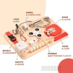Premium Safety & Quality: Crafted with care, our Busy Board is handmade from natural wood and non-toxic materials. Each piece is meticulously hand-polished, ensuring a safe and smooth surface for your child’s exploration.