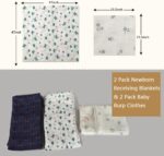 Muslin Swaddle Blankets, 2 Pack Newborn Receiving Blankets & 2 Pack Baby Burp Cloths, Baby Shower Essentials, Cotton Swaddle Wrap Breathable for Baby Boys Girls Infant Registry