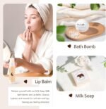PREGNANT MOM GIFTS: Every new mom deserves a little time for herself. Step into relaxation with our New Mom Care Package—your ticket to self-care bliss! Light a soothing lavender-scented candle, indulge in a sweet energy boost with our gentle, nourishing goat milk soap and luxurious milk bath bomb, and pamper her lips with our moisturizing lip balm. It’s the ultimate postpartum care gift for the amazing new mom in your life! #PerfectNewMomGift